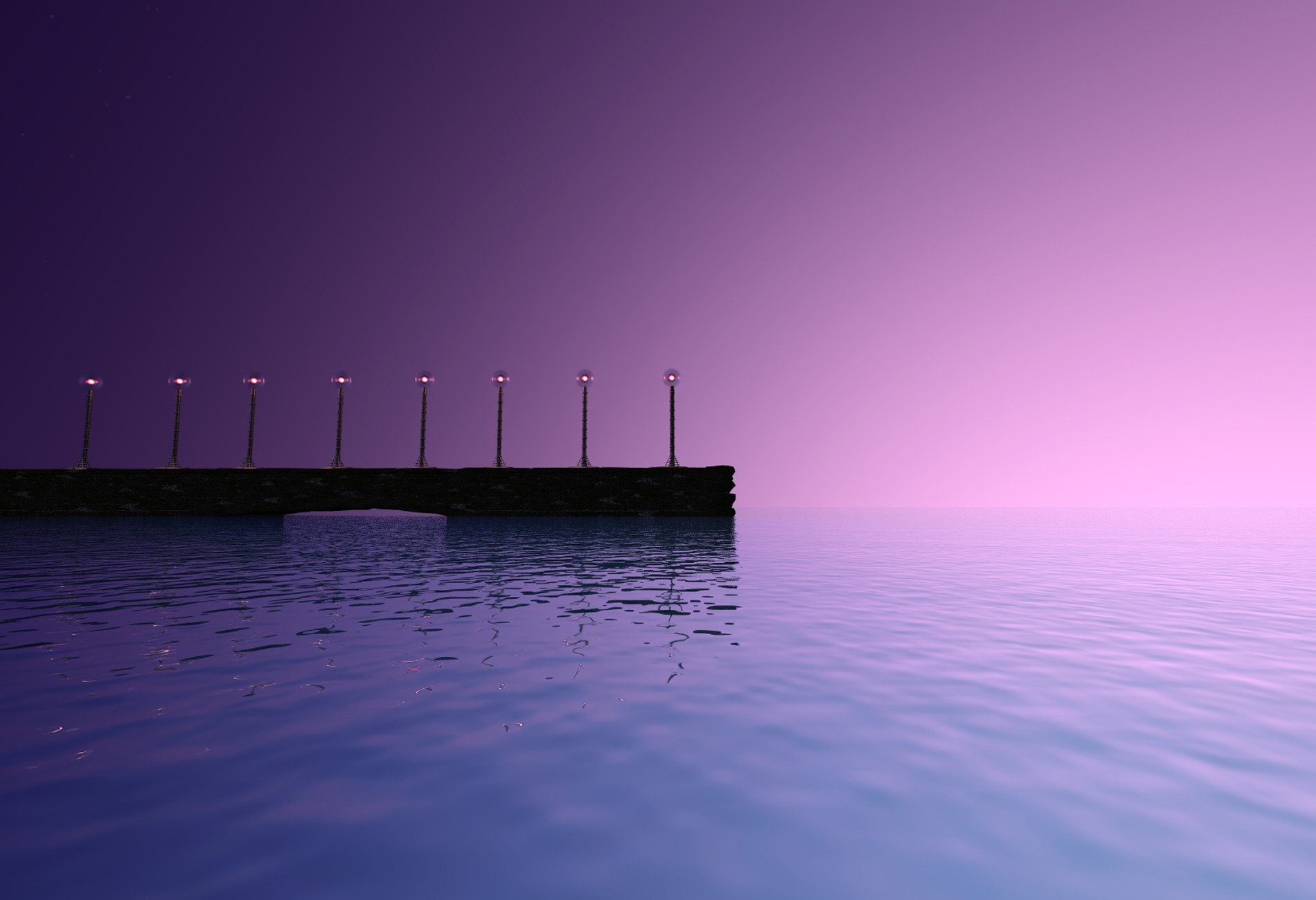 Coucher de soleil sur la côte de pierre du côté de la jetée