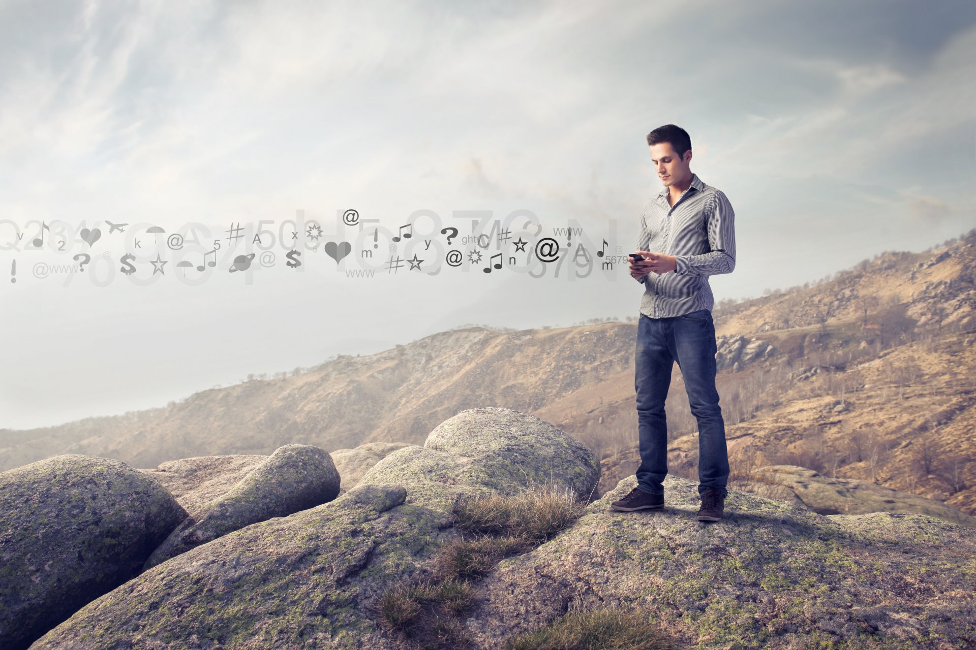 Image créative dans les montagnes avec une vague de symbolesImage créative dans les montagnes avec une vague de symboles