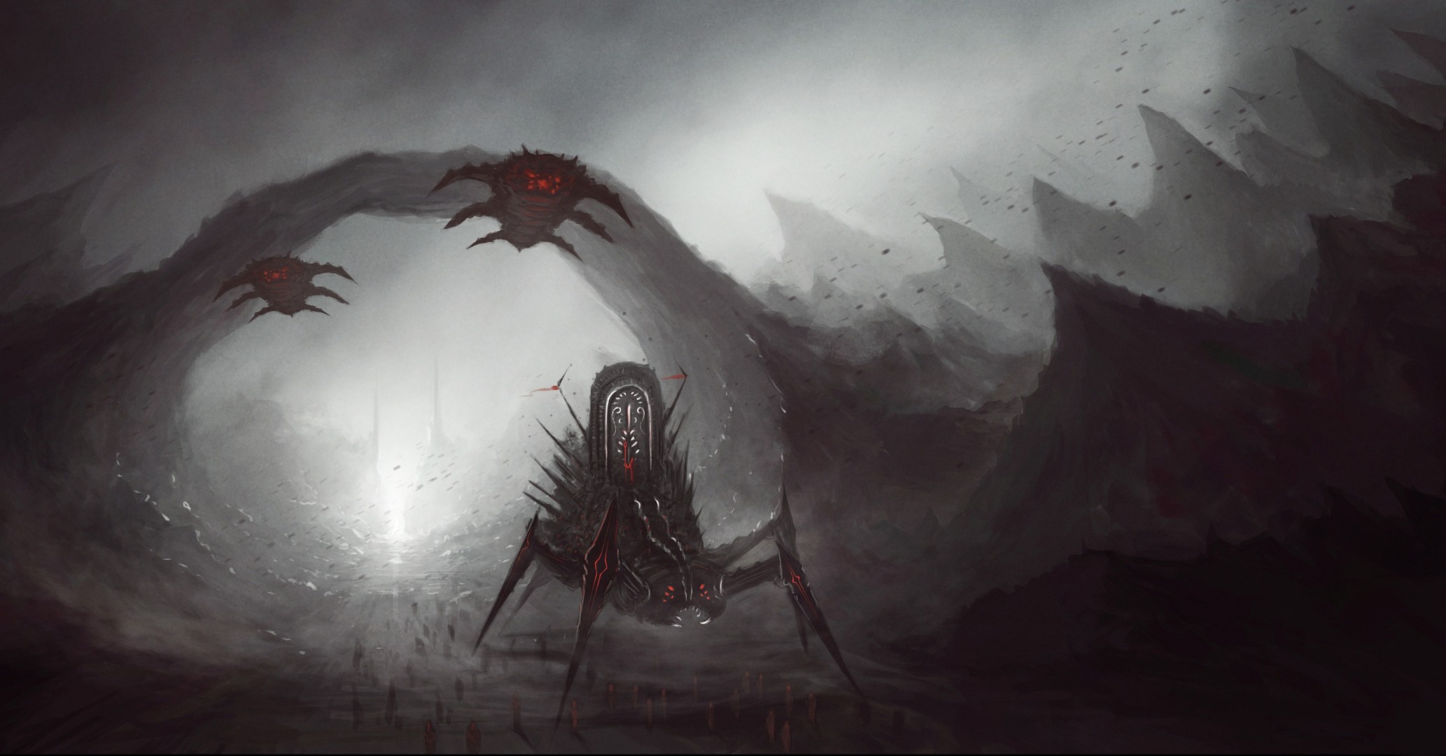 Hydra guerrière dans le brouillard sous les nuagesHydra guerrière dans le brouillard sous les nuages