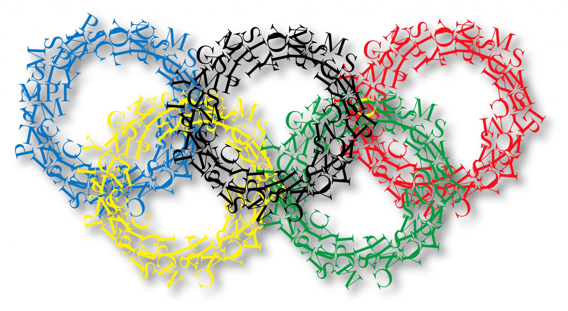 Carte sur fond blanc avec des textures des anneaux des jeux olympiques de Sotchi 2014