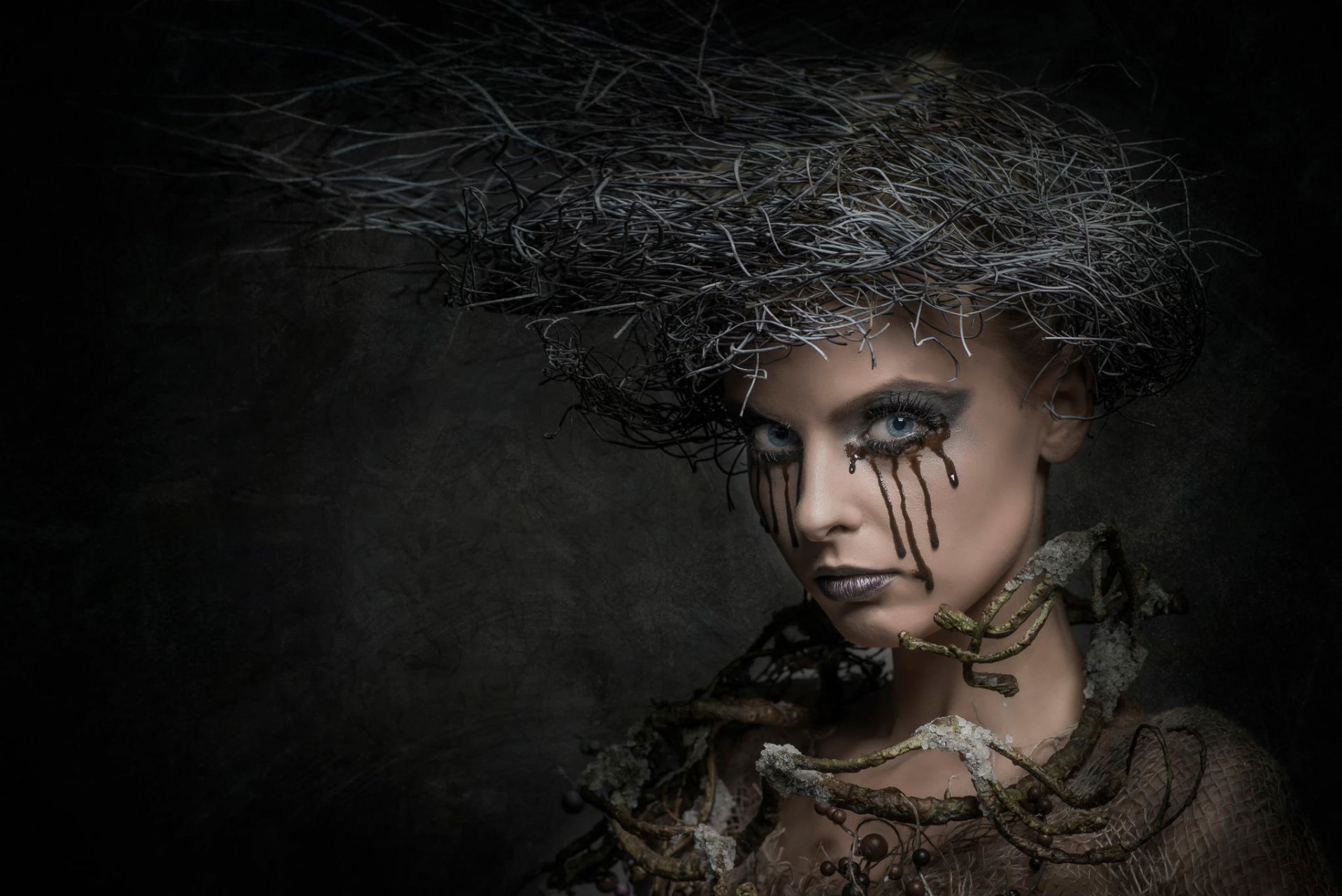 Visage étrange avec des yeux bleus et une croix à l'intérieur des yeuxVisage étrange avec des yeux bleus et une Croix à l'intérieur des yeux