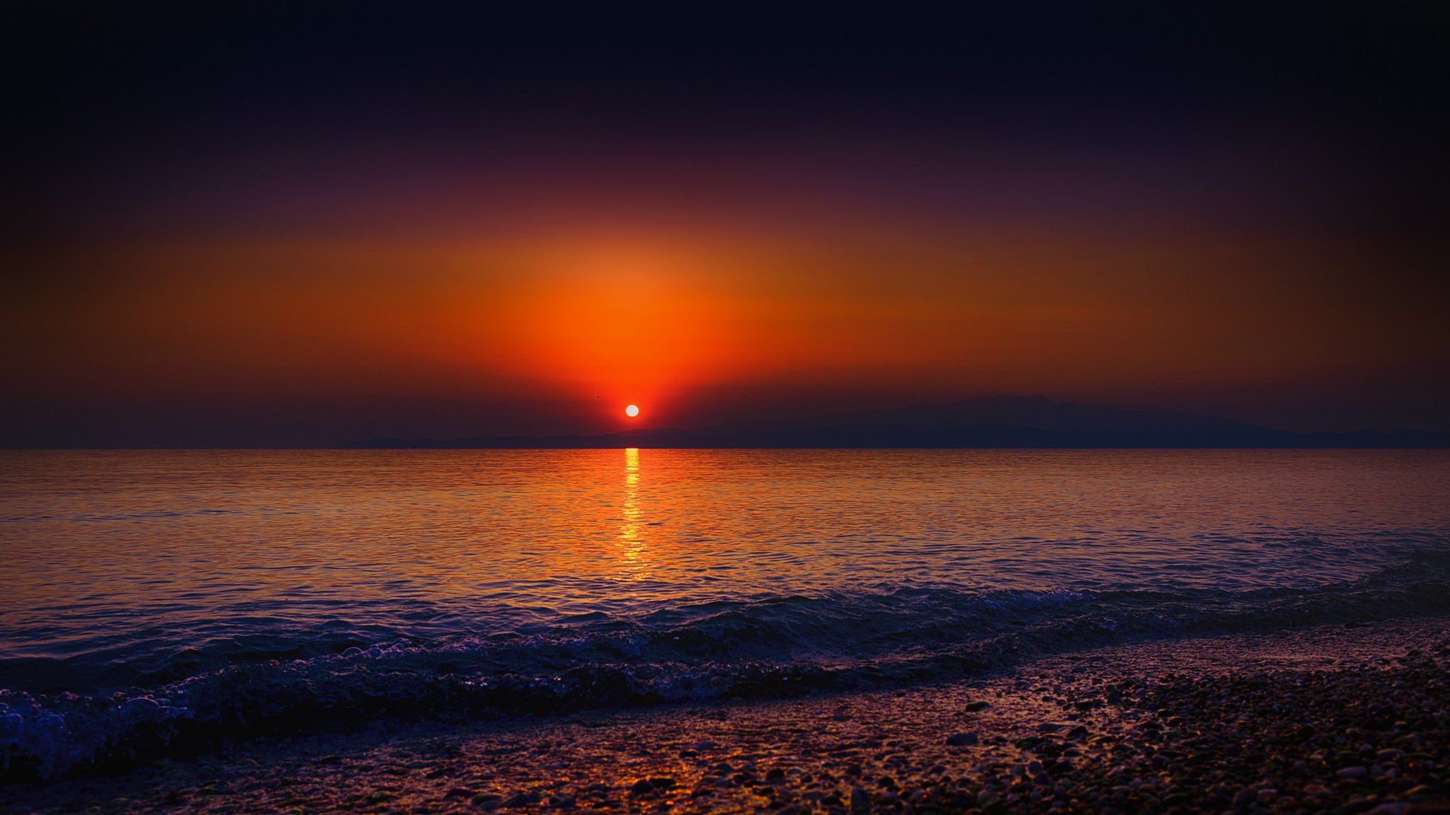 Bord de mer avec vue sur le coucher de soleil rougeBord de mer avec vue sur le coucher de soleil rouge