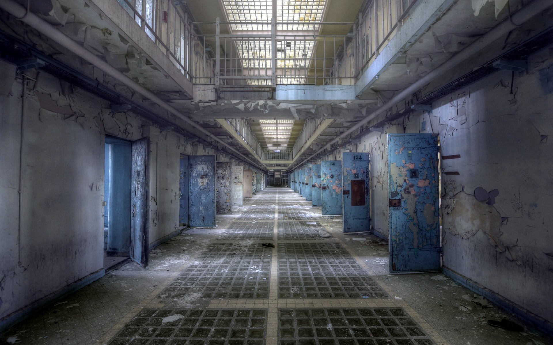 Un corédor de prison sombre dans une colonne de haute sécurité