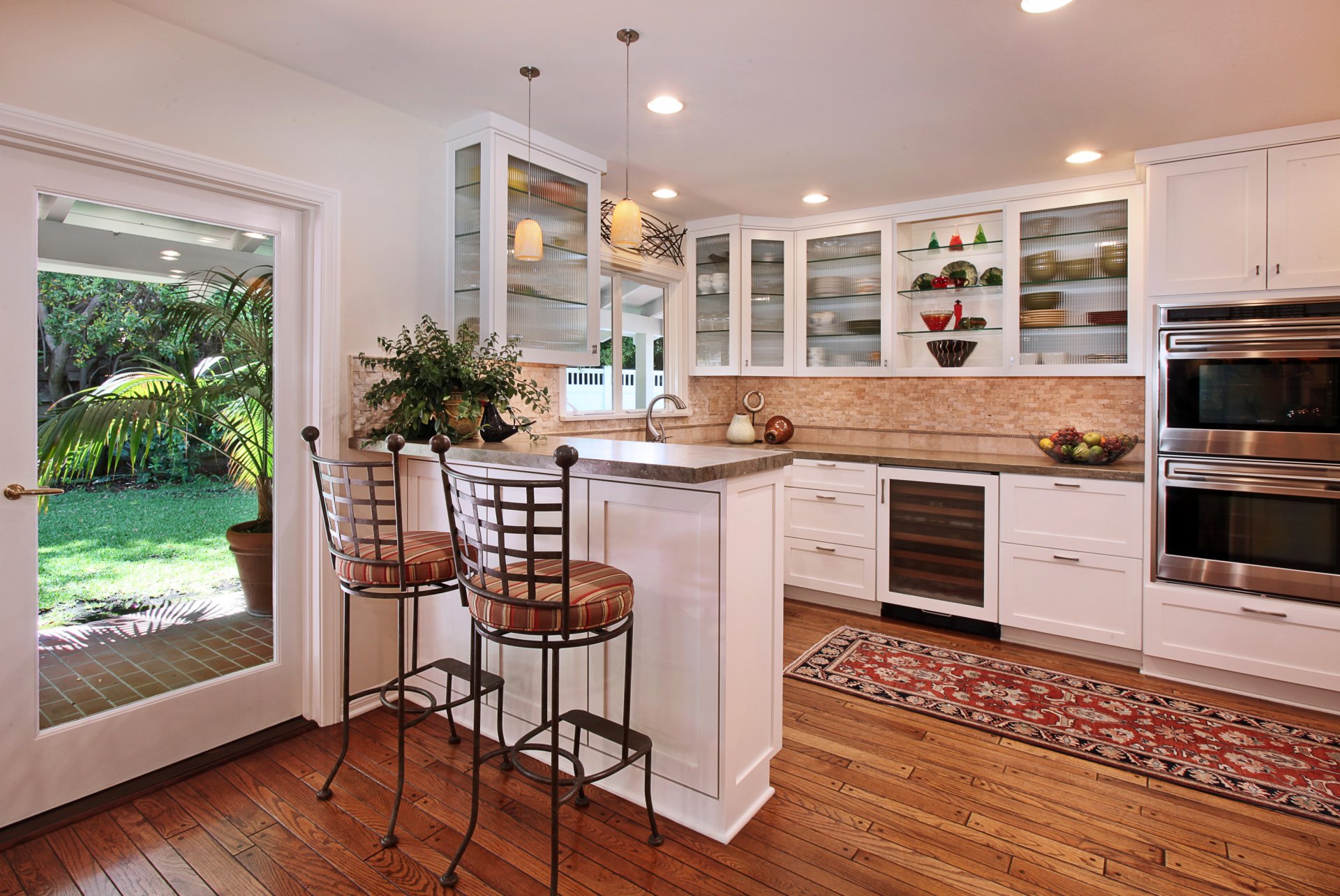 Design de cuisine moderne dans des tons blancs et brunsDesign de cuisine moderne dans des tons blancs et bruns