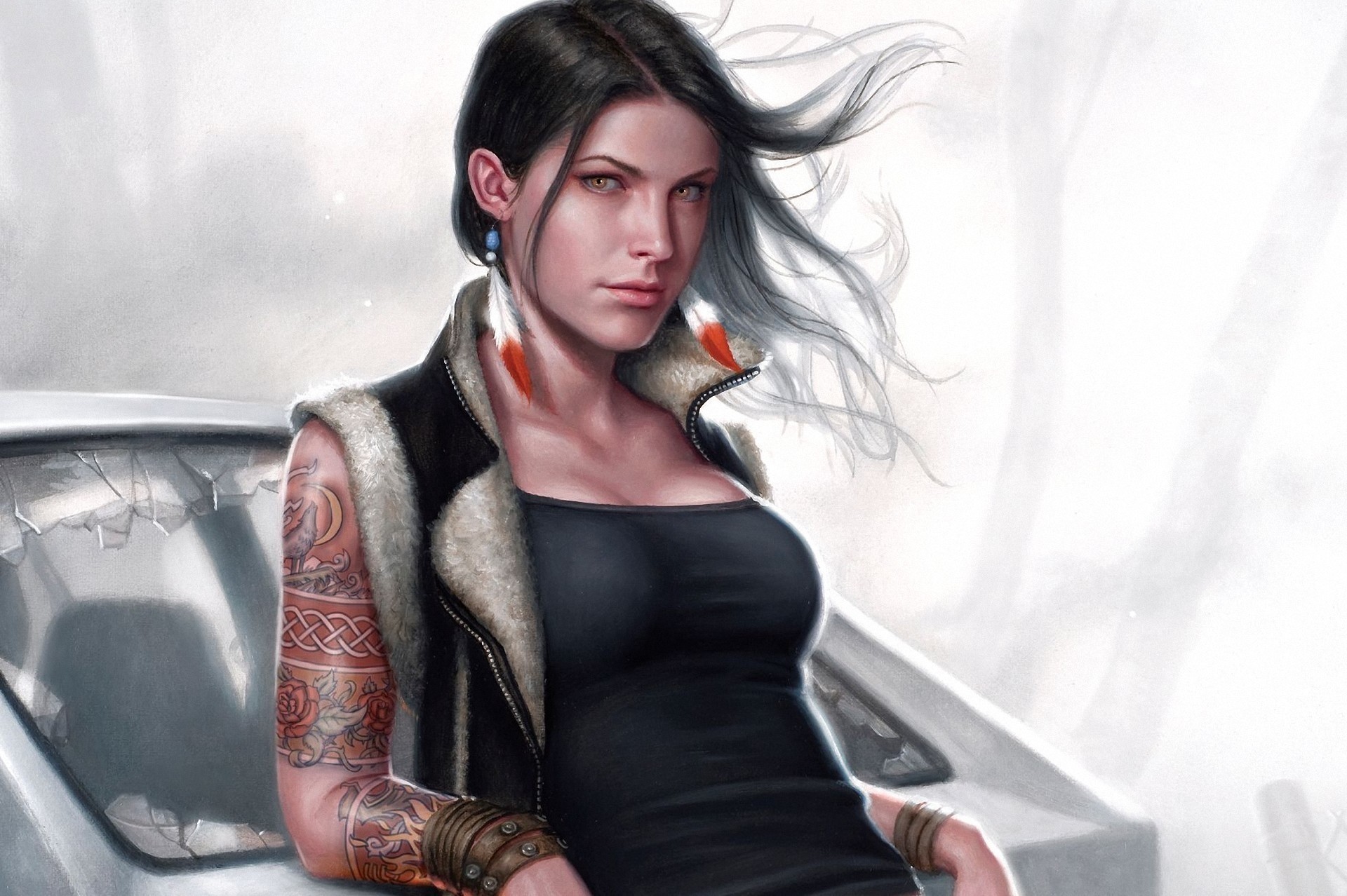 Brunette aux cheveux longs et tatouage en forme d'étoile sur le poignet