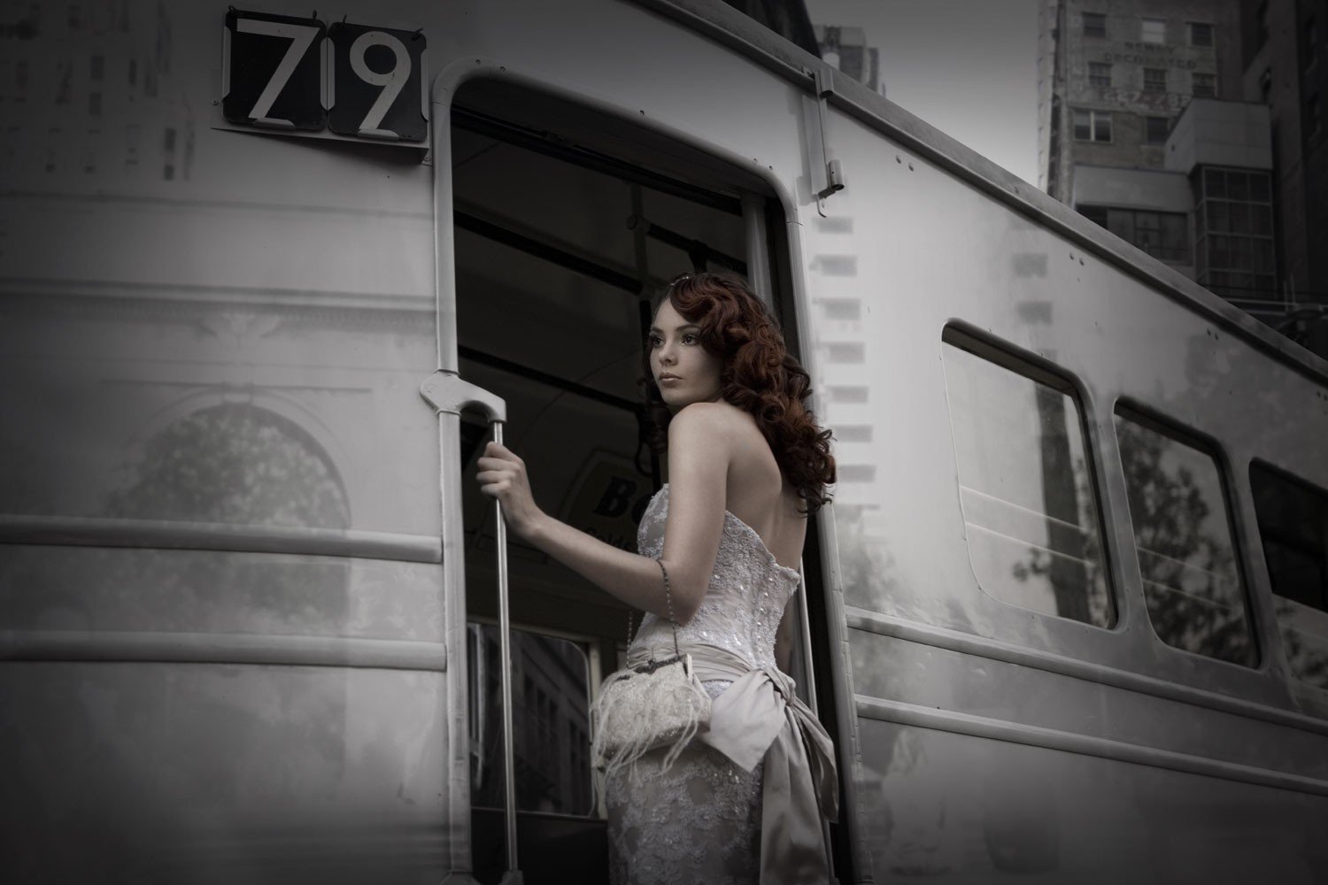 La jeune fille s'accroche à la main courante du wagonLa jeune fille s'accroche à la main courante du wagon