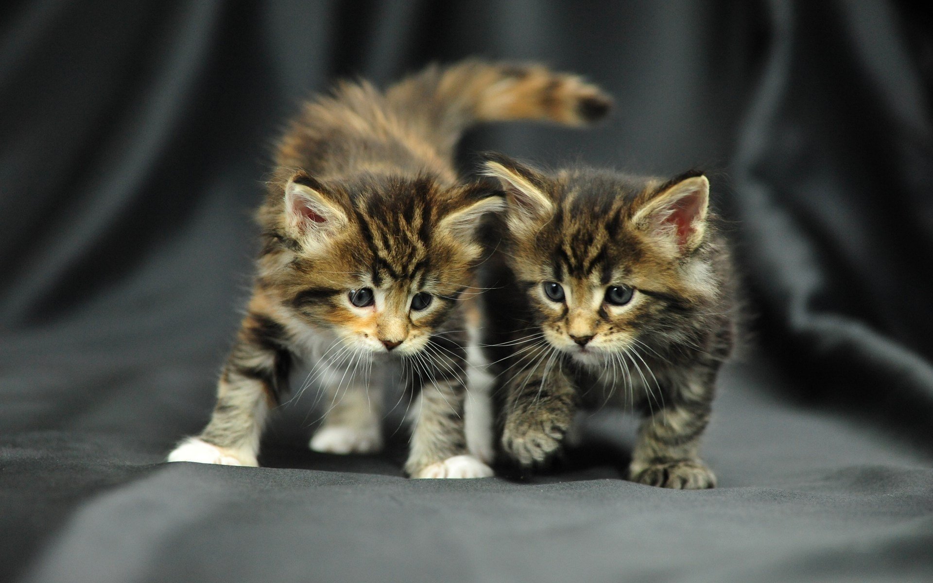 Photo de chatons debout. bambins moelleux sur fond noirPhoto de chatons debout. Bambins moelleux sur fond noir
