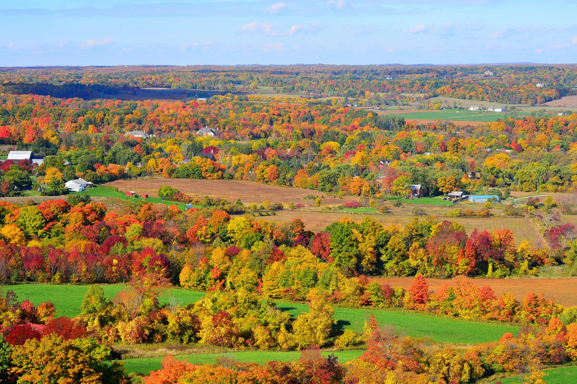 Un beau paysage avec le soleil, de collines et de boisUn beau paysage avec le soleil, de collines et de bois