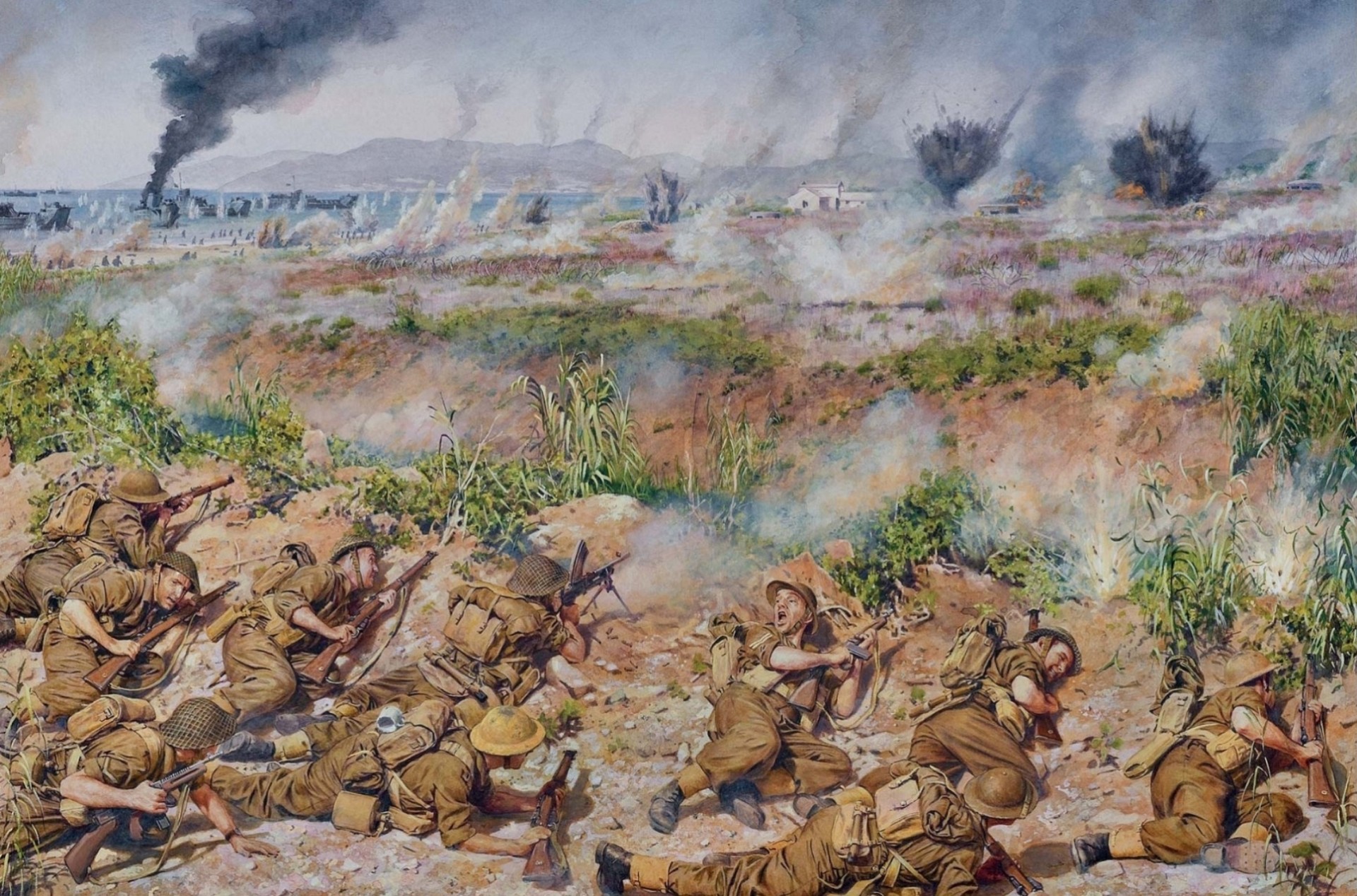Champ de guerre avec des soldats dans les tranchéesChamp de guerre avec des soldats dans les tranchées