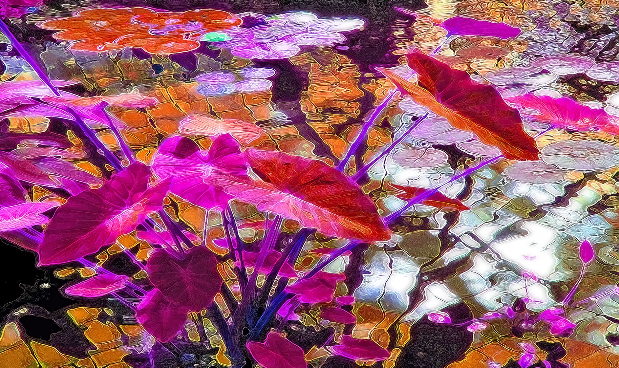 Traitement informatique du dessin d'un réservoir avec des feuilles
