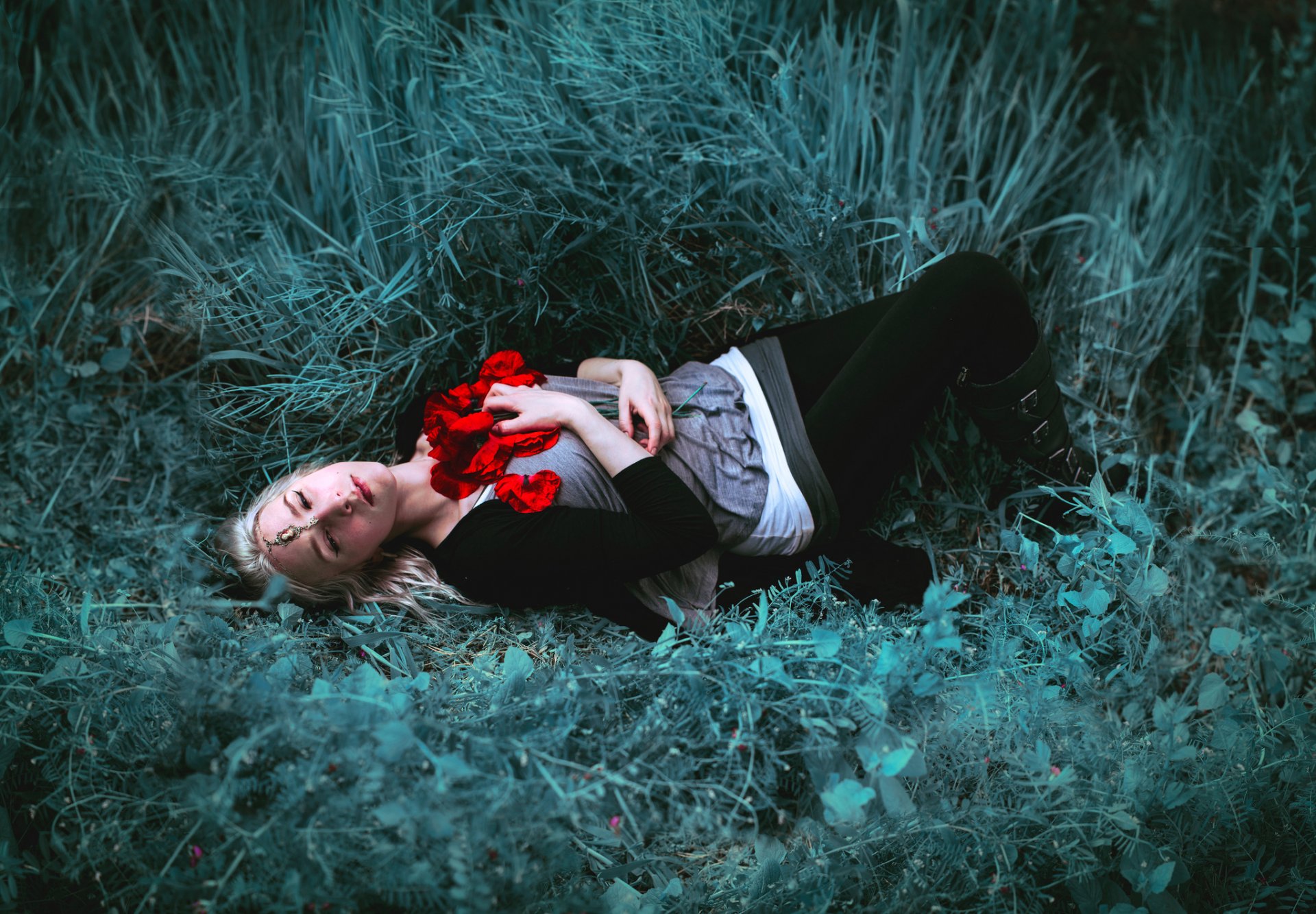 Champ de pavot endormi comme dans un conte de féesChamp de pavot endormi comme dans un conte de fées