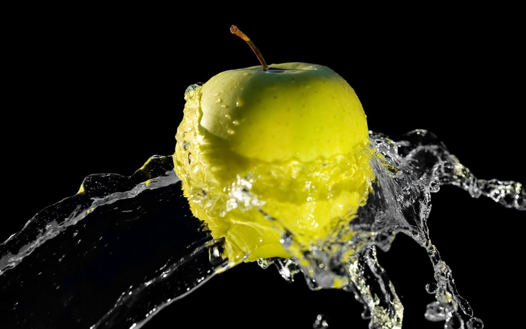 Pomme jaune dans un jet d'eau