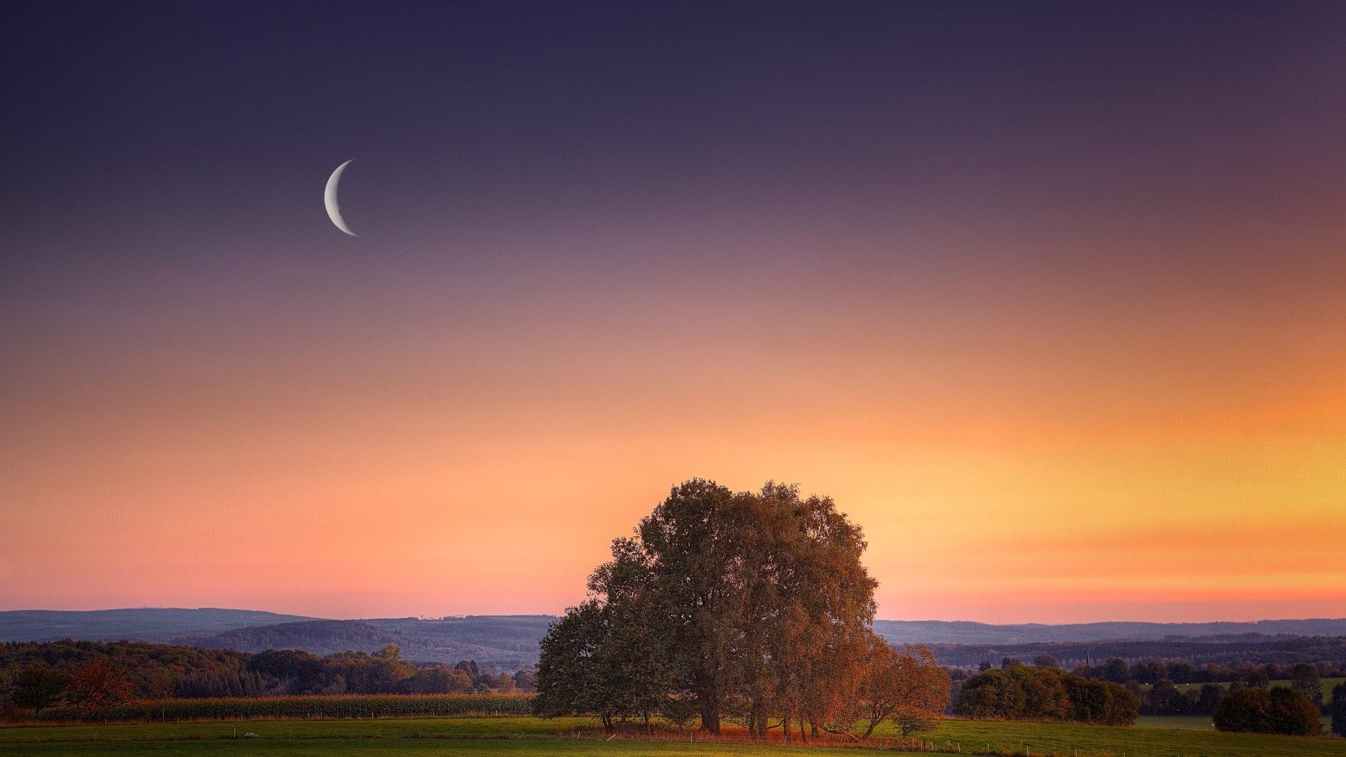 Couronne d'arbres au coucher du soleil rouge et jauneCouronne d'arbres au coucher du soleil rouge et jaune