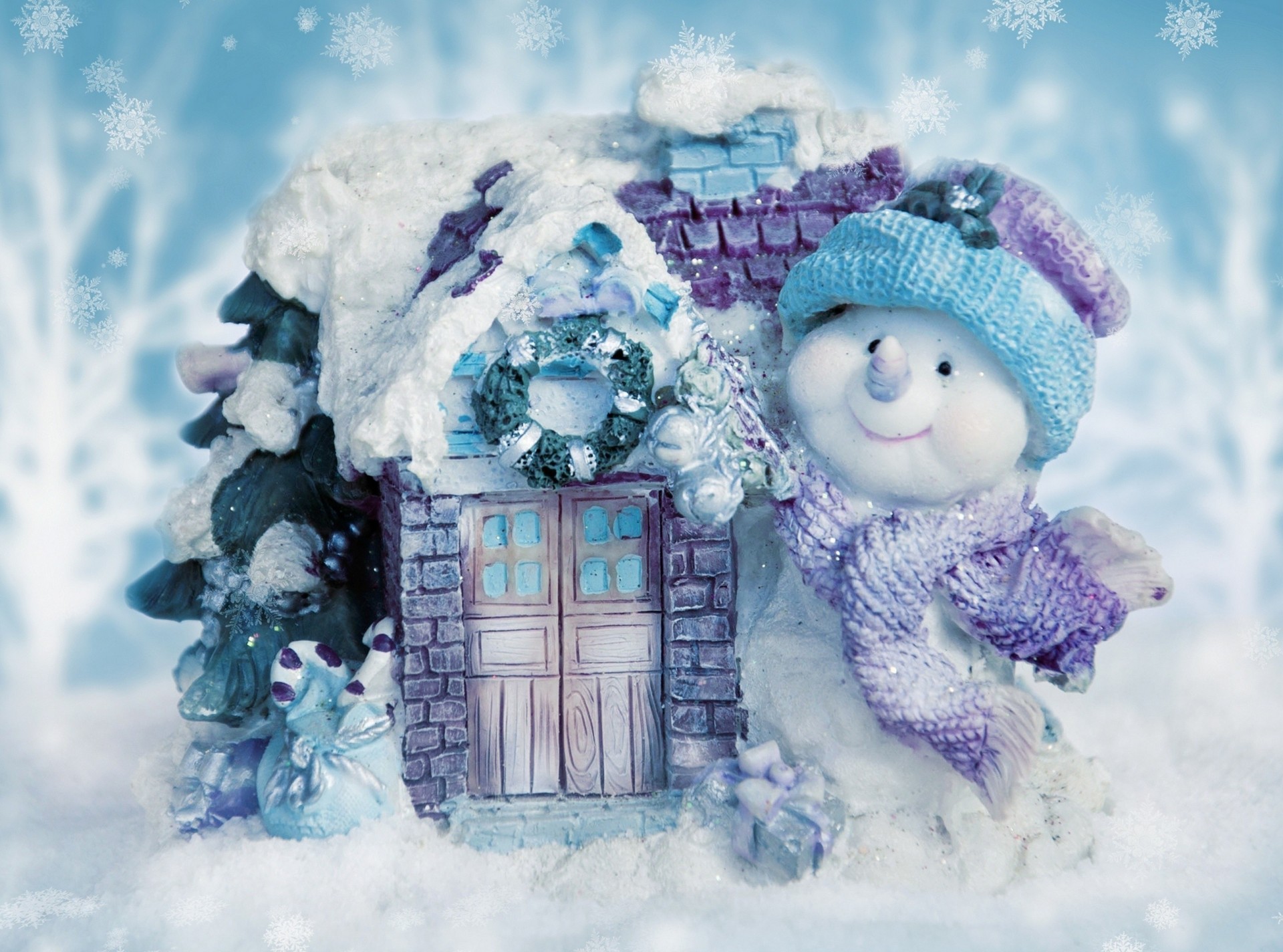 Bonhomme de neige se dresse sur la neige duveteuseBonhomme de neige se dresse sur la neige duveteuse