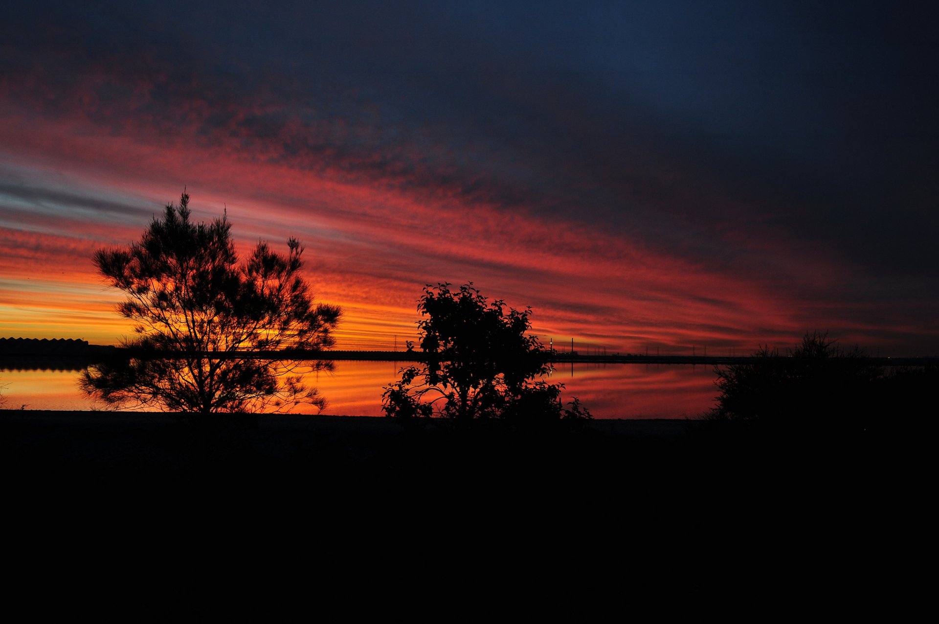 Beau coucher de soleil au bord du lac au crépusculeBeau coucher de soleil au bord du lac au crépuscule