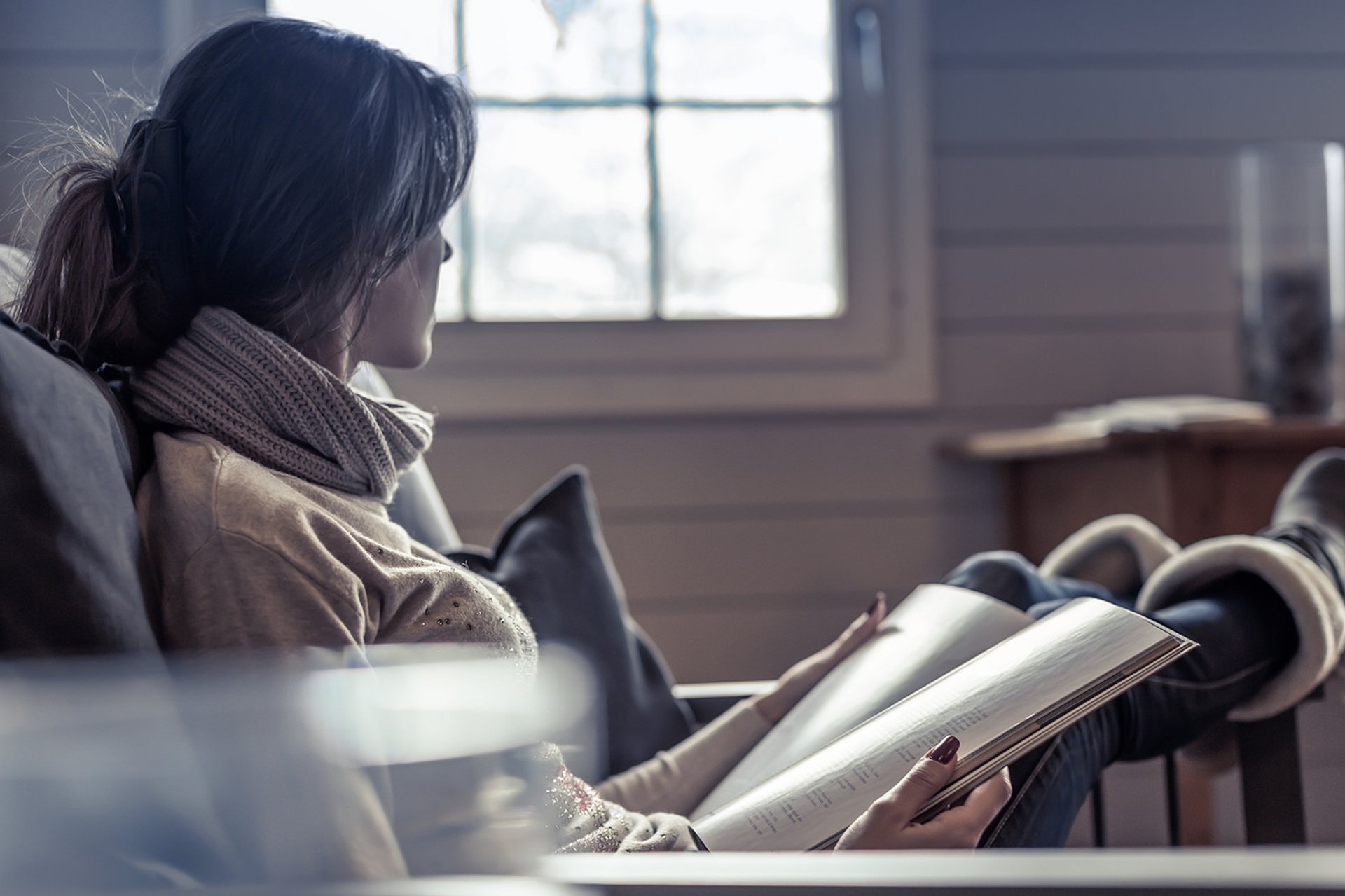 La jeune fille est assise dans une chaise et lit un magazineLa jeune fille est assise dans une chaise et lit un magazine