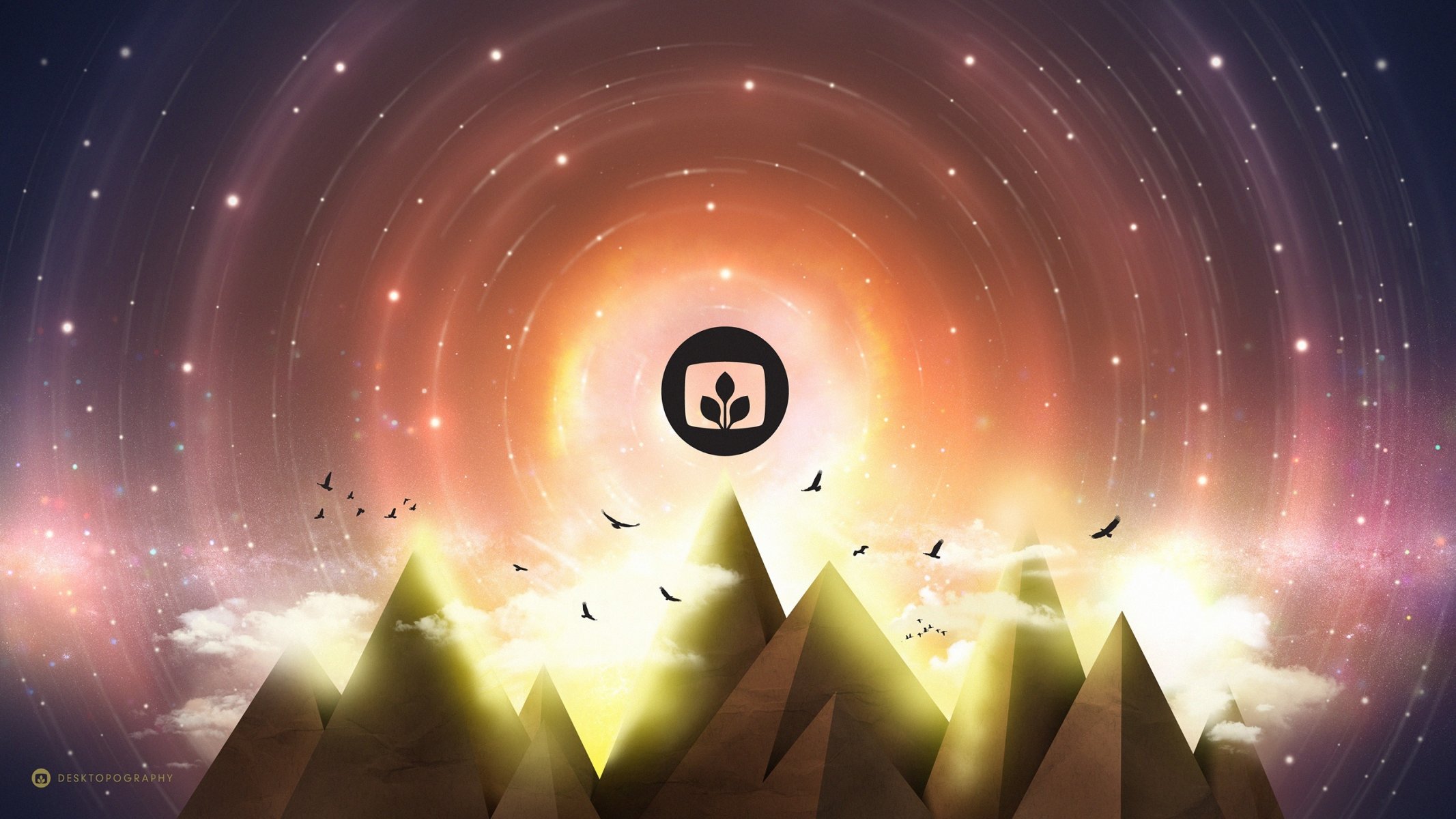 Le logo avec des oiseaux et des crêtes. desktopographyLe logo avec des oiseaux et des crêtes. Desktopography