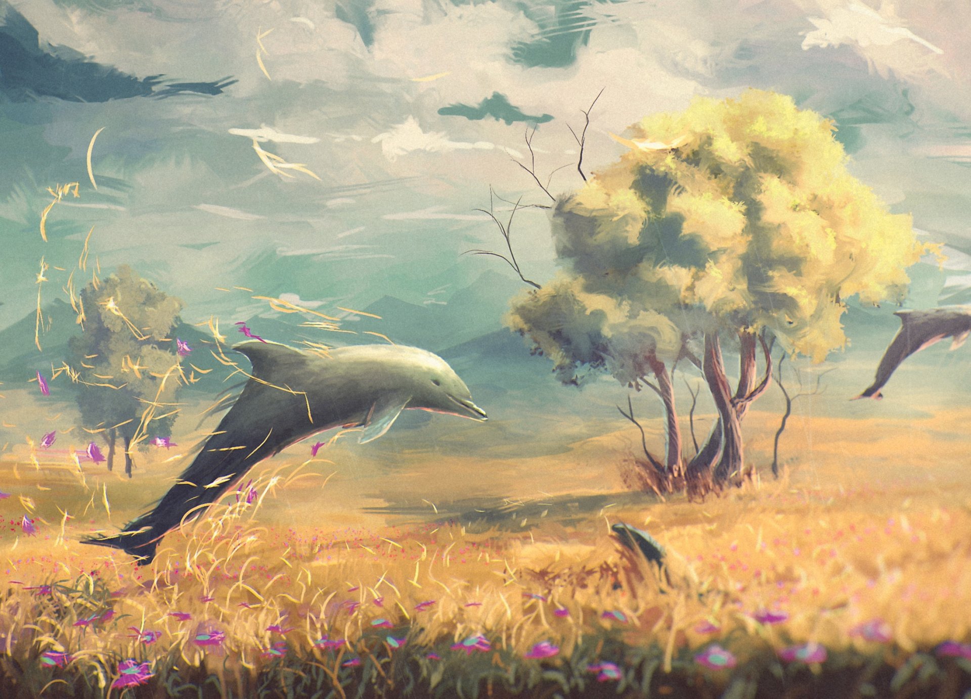 Paysage tropical avec de beaux arbres et un grand voilierPaysage tropical avec de beaux arbres et un grand voilier