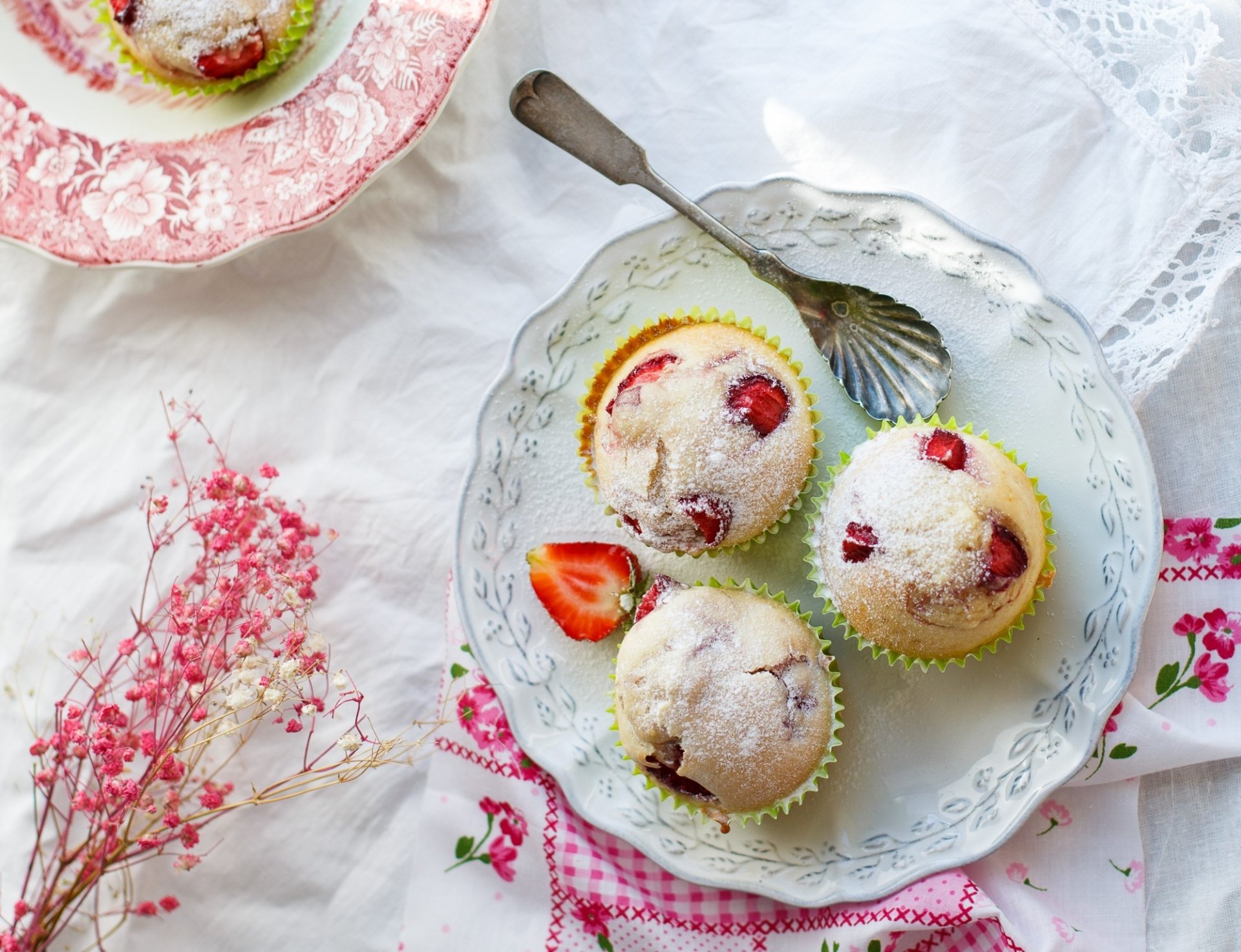 Tranche de dessert aux fraises tendre sur une assietteTranche de dessert aux fraises tendre sur une assiette
