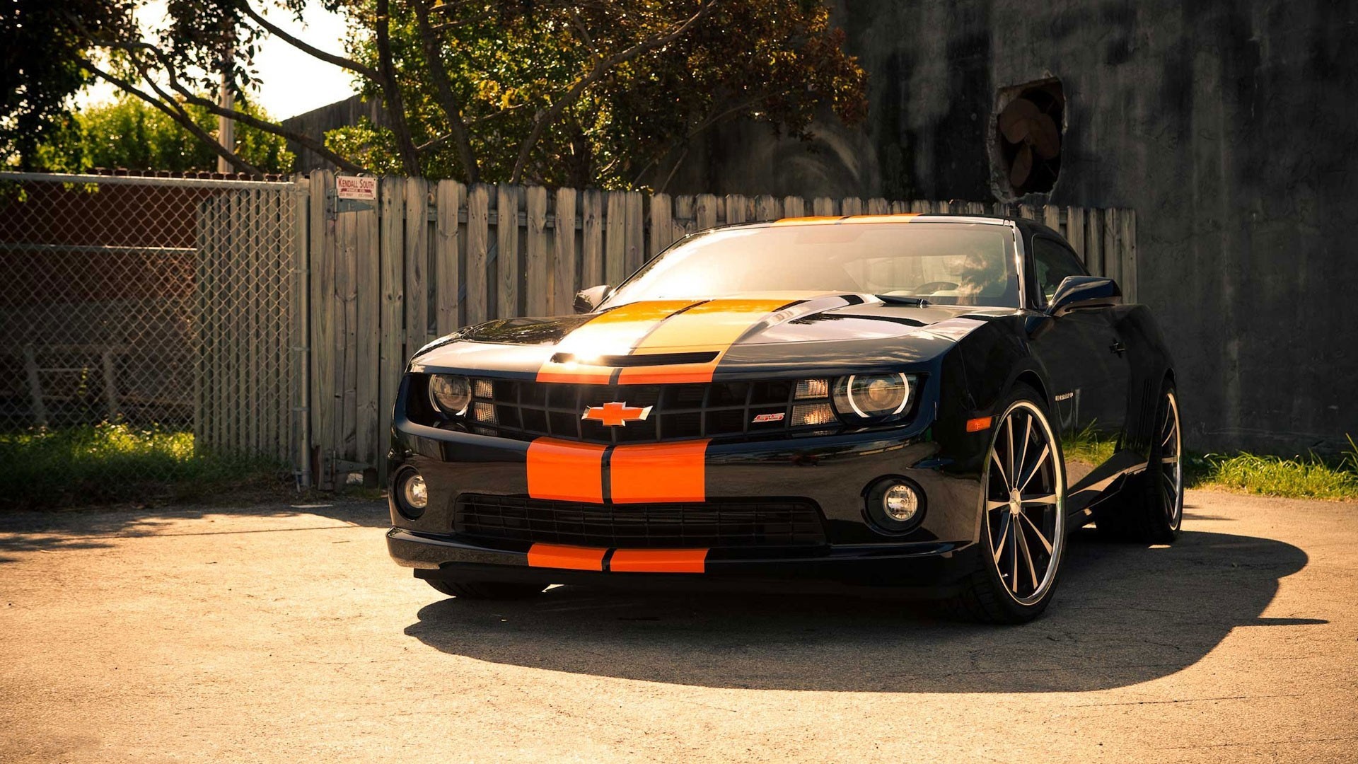 Voiture noire avec rayures orange