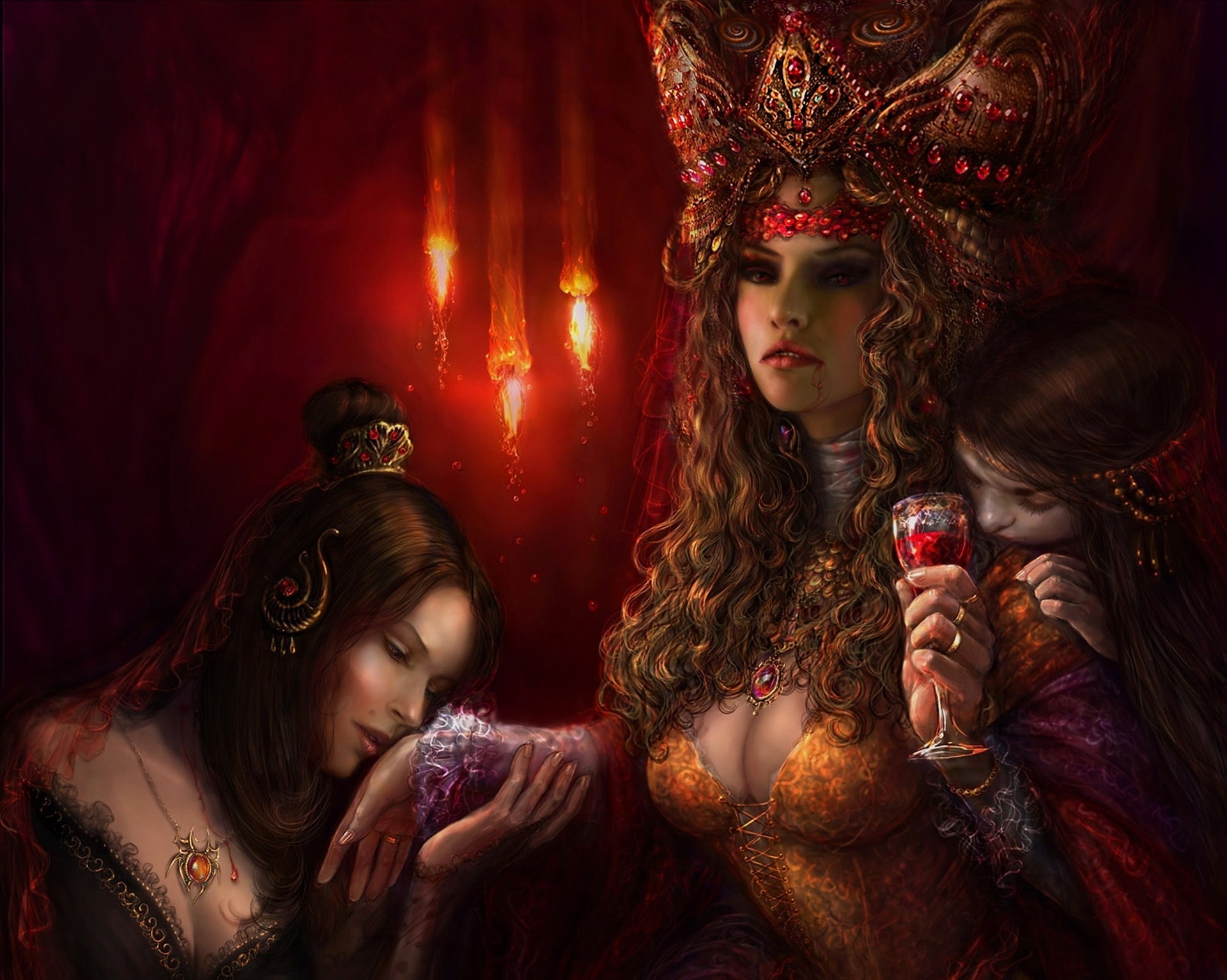 Filles médiévales de luxe à la lumière des bougiesFilles médiévales de luxe à la lumière des bougies