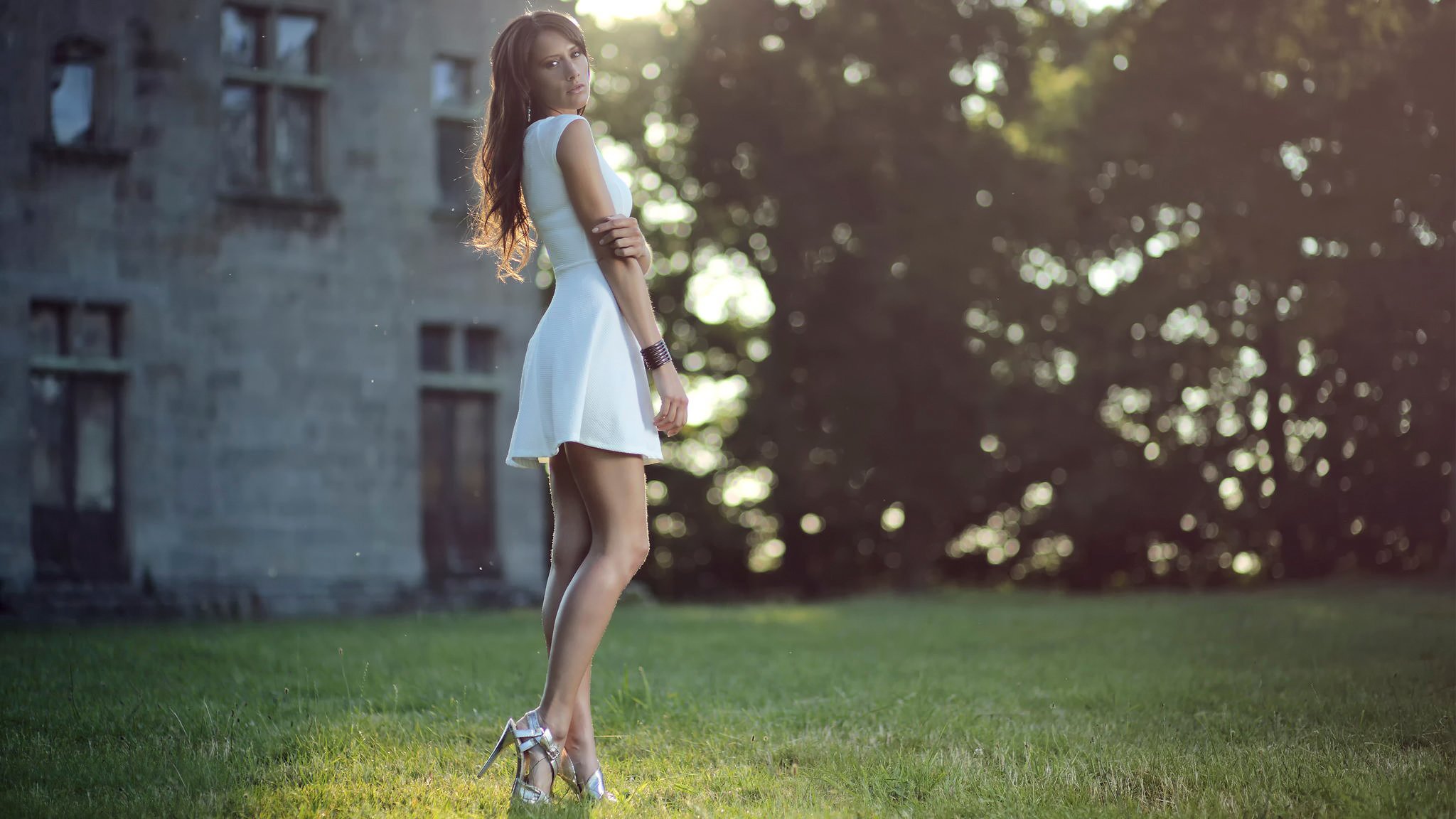 Fille en robe blanche avec ceinture rouge danse dans le nouvel anFille en robe blanche avec ceinture rouge danse dans le nouvel an