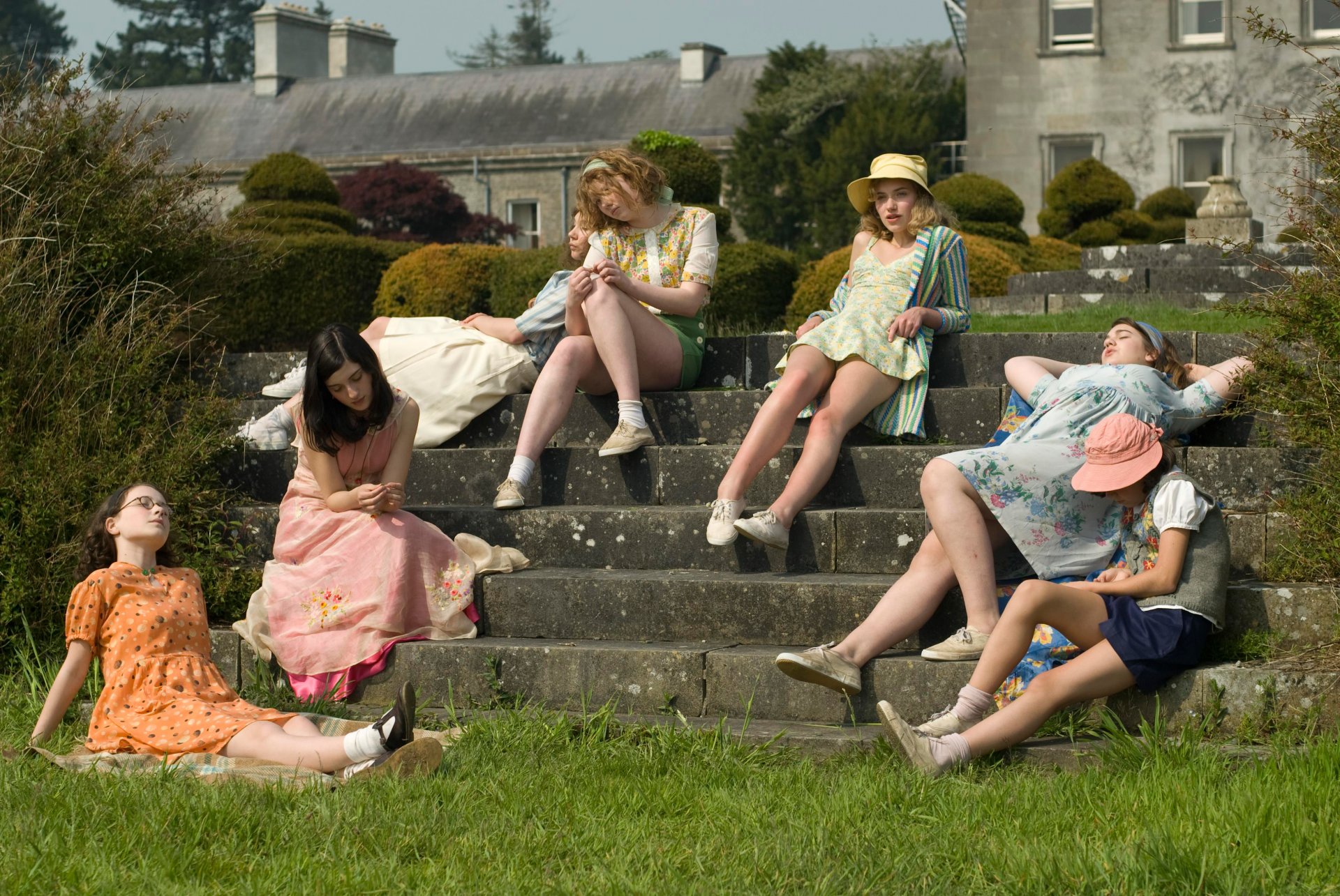 Image pastel. fille avec un bouquet de fleurs sur assis sur les marches de l'escalierImage pastel. Fille avec un bouquet de fleurs sur assis sur les Marches de l'escalier