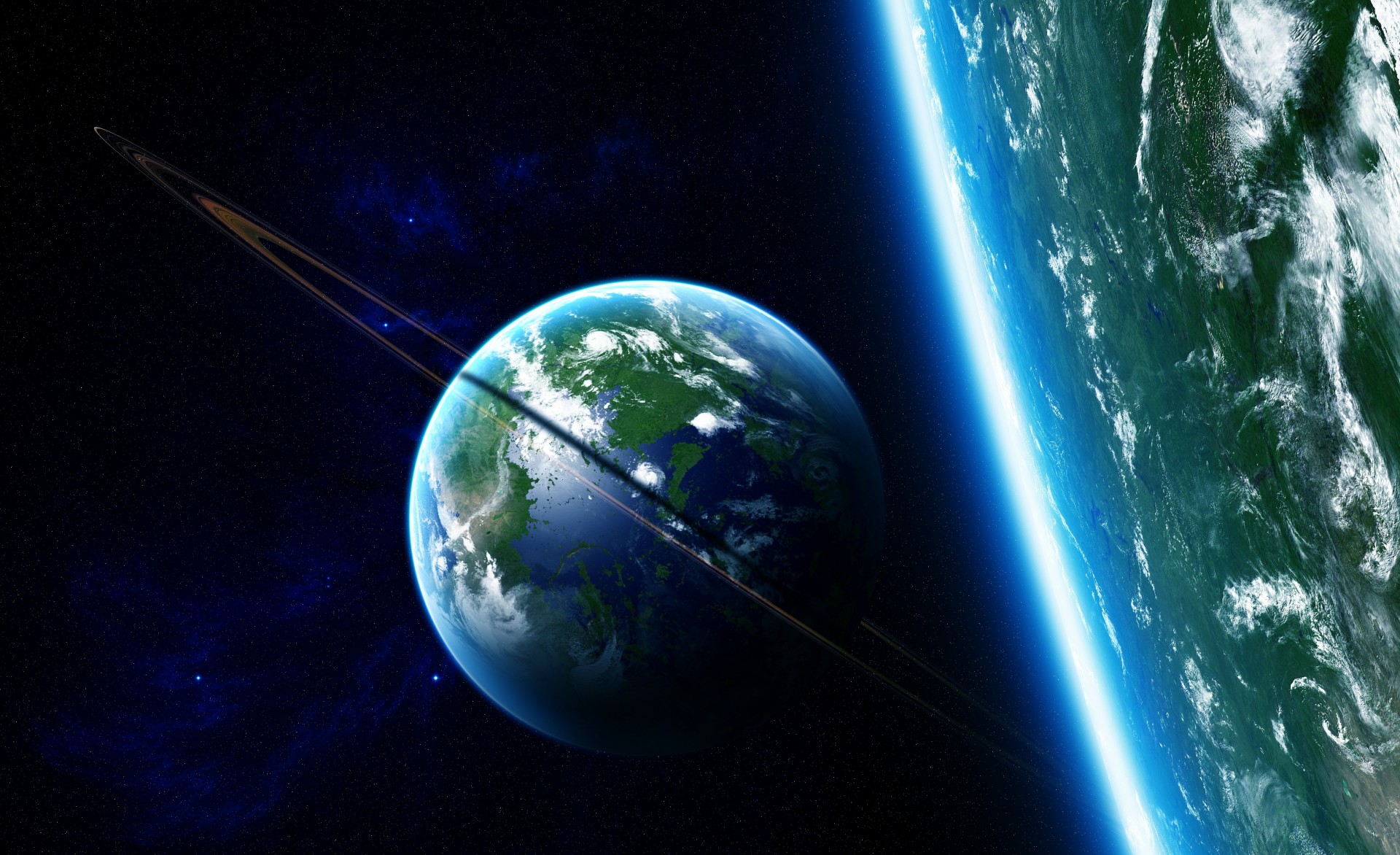 Représente l'espace, autour de la planète et les étoilesReprésente l'espace, autour de la planète et les étoiles