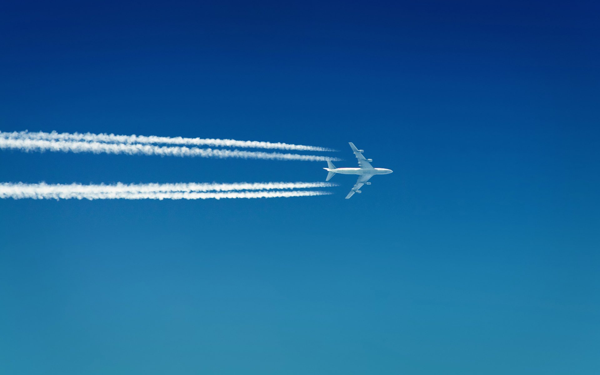 Un avion laissant derrière lui un schlef blanc comme neige dans le ciel