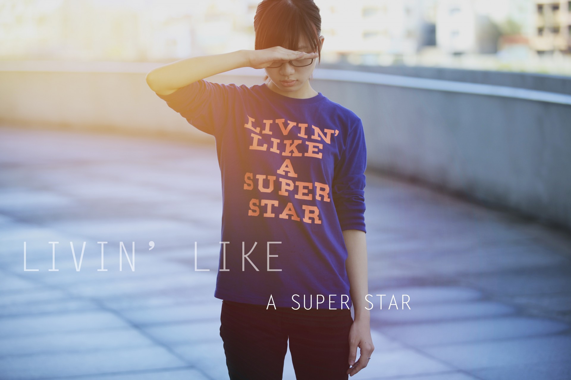 Jeune fille dans un t-shirt bleu avec des inscriptions et une casquette de baseball dans les rayons du soleilJeune fille dans un t-shirt bleu avec des inscriptions et une casquette de baseball dans les rayons du soleil