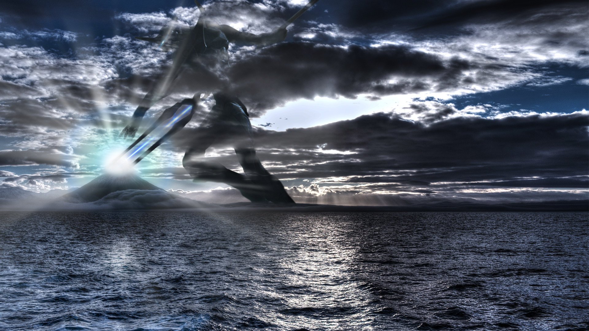 Géant en cours d'exécution sur la mer à la lumièreGéant en cours d'exécution sur la mer à la lumière