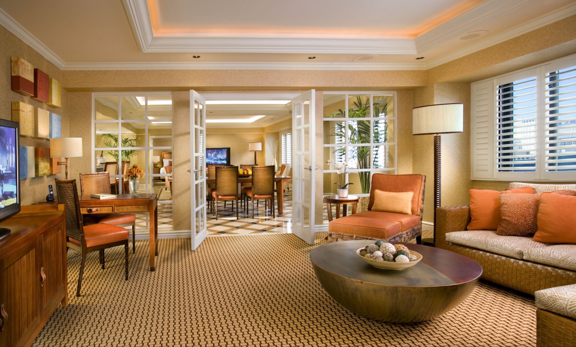 Grand salon de style moderne avec canapés en cuir et accès à la piscineGrand salon de style moderne avec canapés en cuir et accès à la piscine