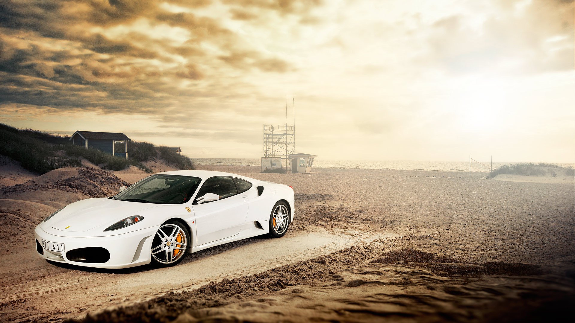 Ferrari enzo dans le désert au coucher du soleil rougeFerrari enzo dans le désert au coucher du soleil rouge