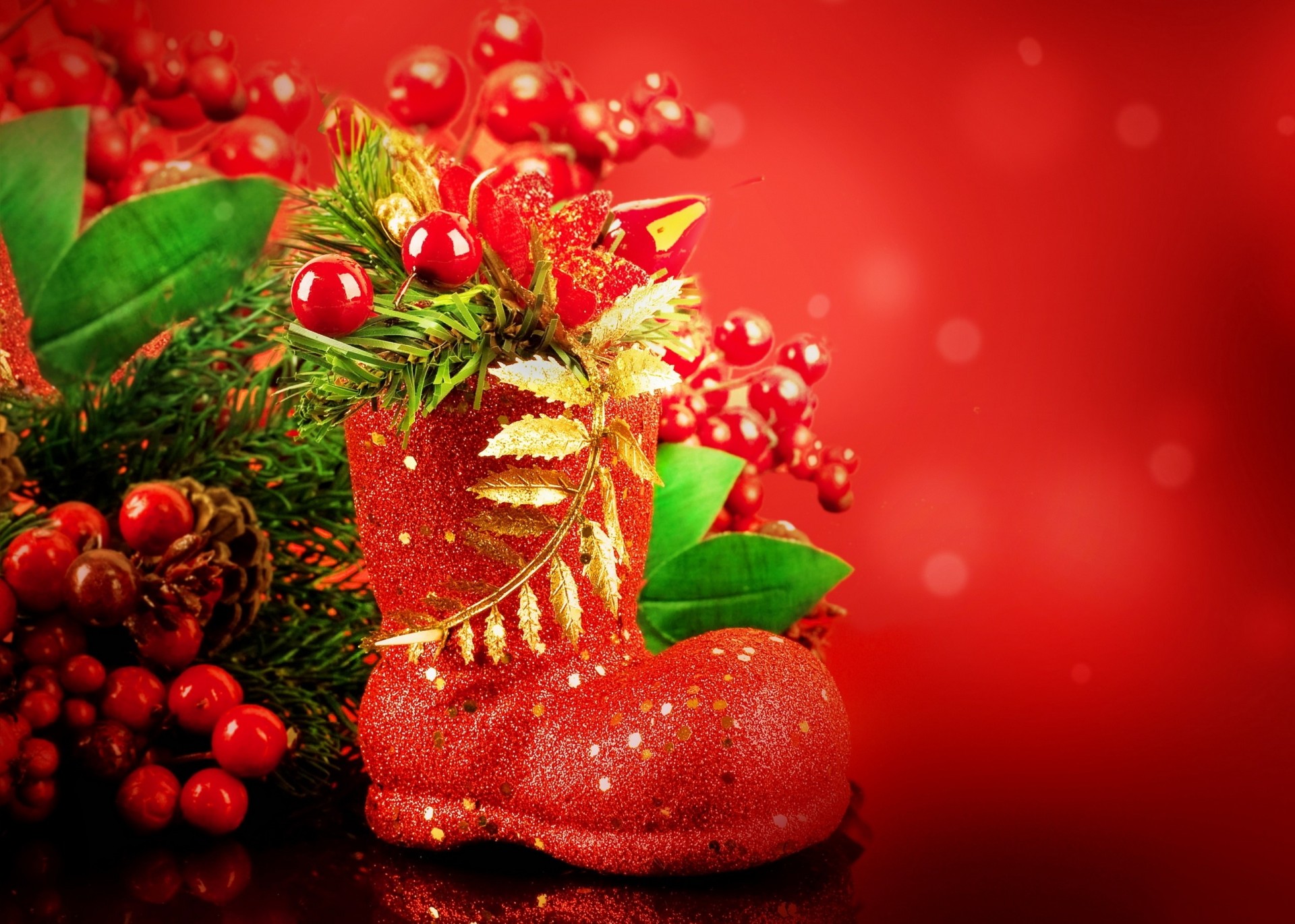 Composition festive de baies en botte rouge