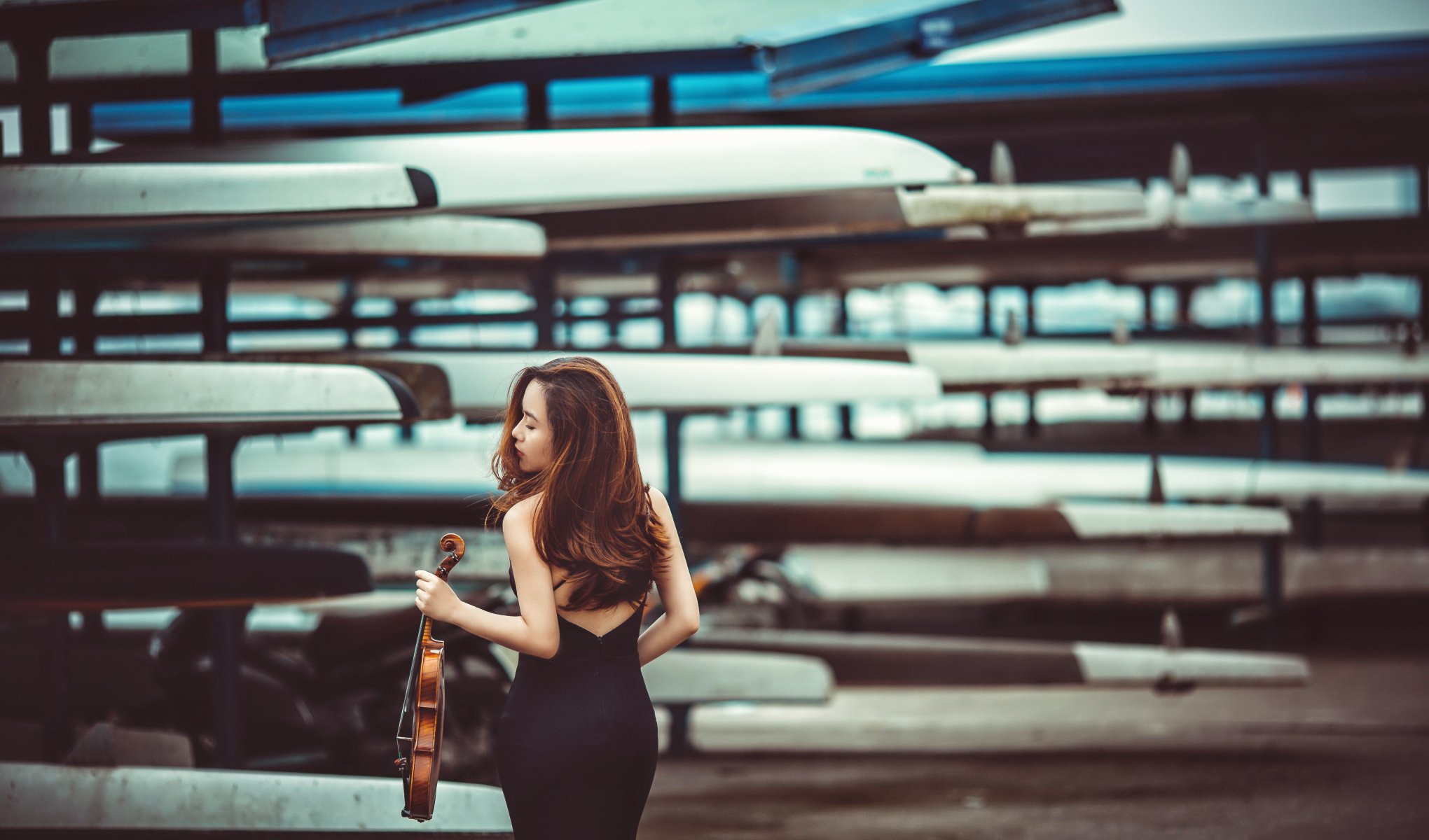 Fille avec un parapluie dans les rayons du coucher du soleil