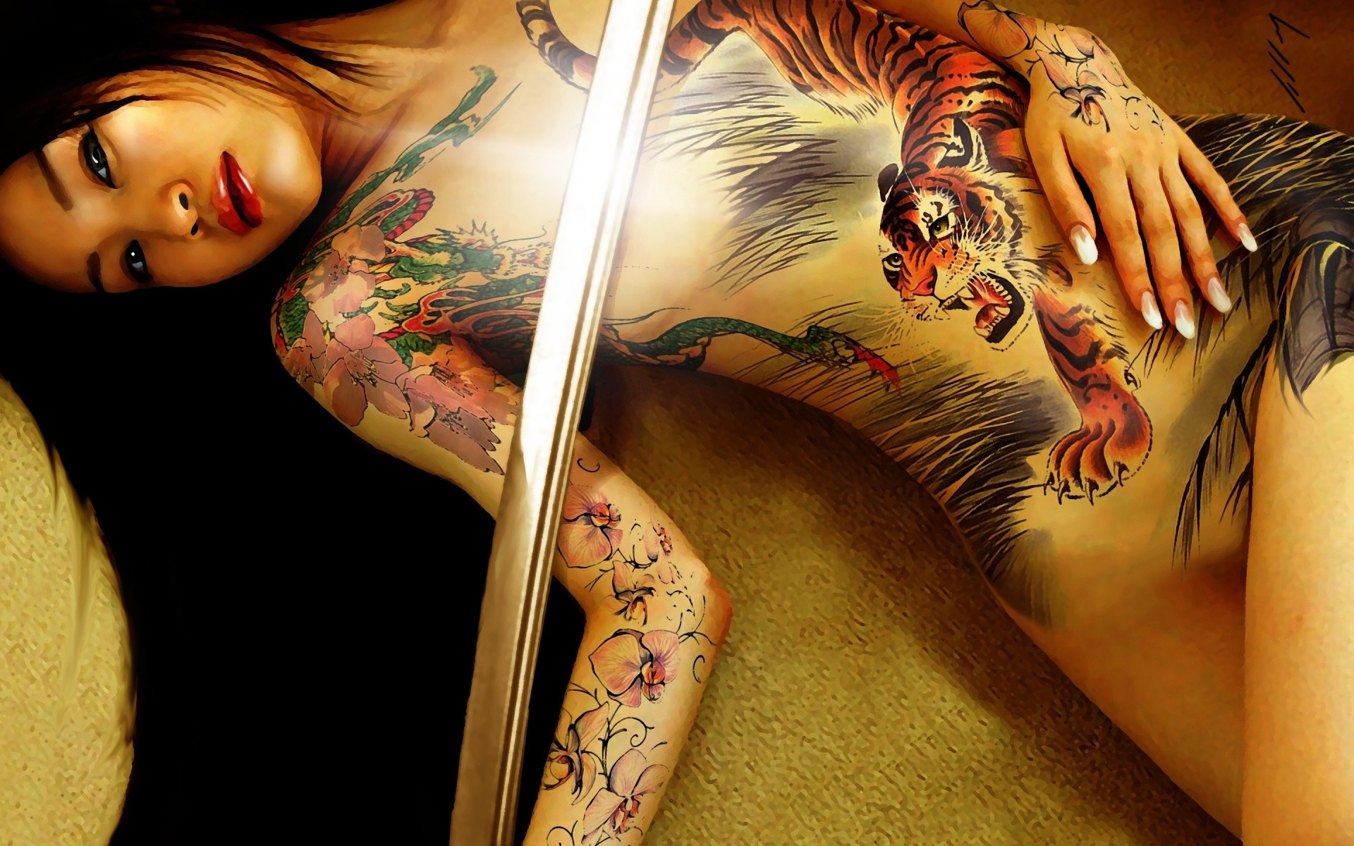 Est-ce un homme ou une femme avec un tatouage de dragon et des chaînes?Est-ce un homme ou une femme avec un tatouage de dragon et des chaînes?