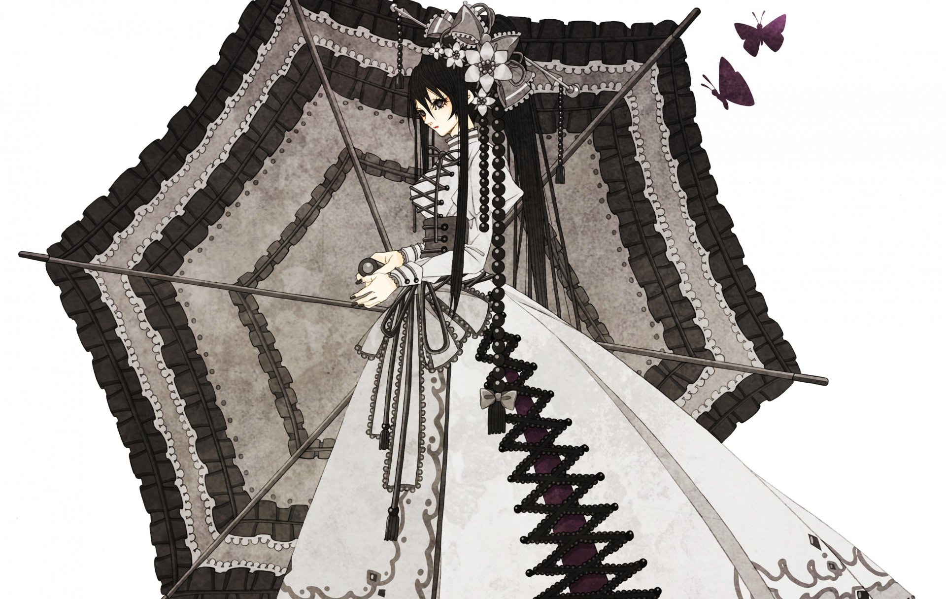 Fille aux cheveux noirs sur le champ sur fond d'arc-en-cielFille aux cheveux noirs sur le champ sur fond d'arc-en-ciel