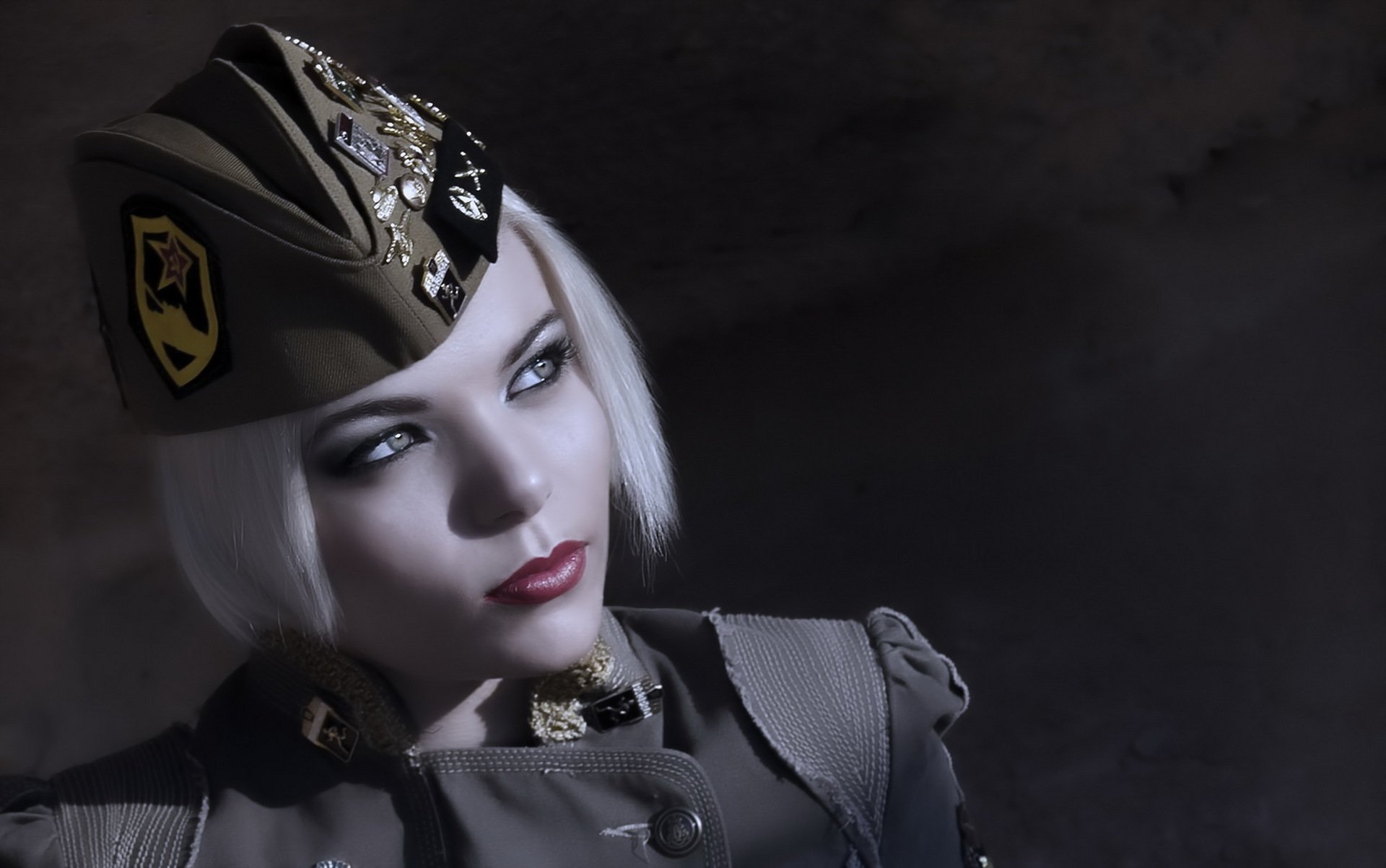 Fille sur un fond sombre avec un regard inhabituelFille sur un fond sombre avec un regard inhabituel