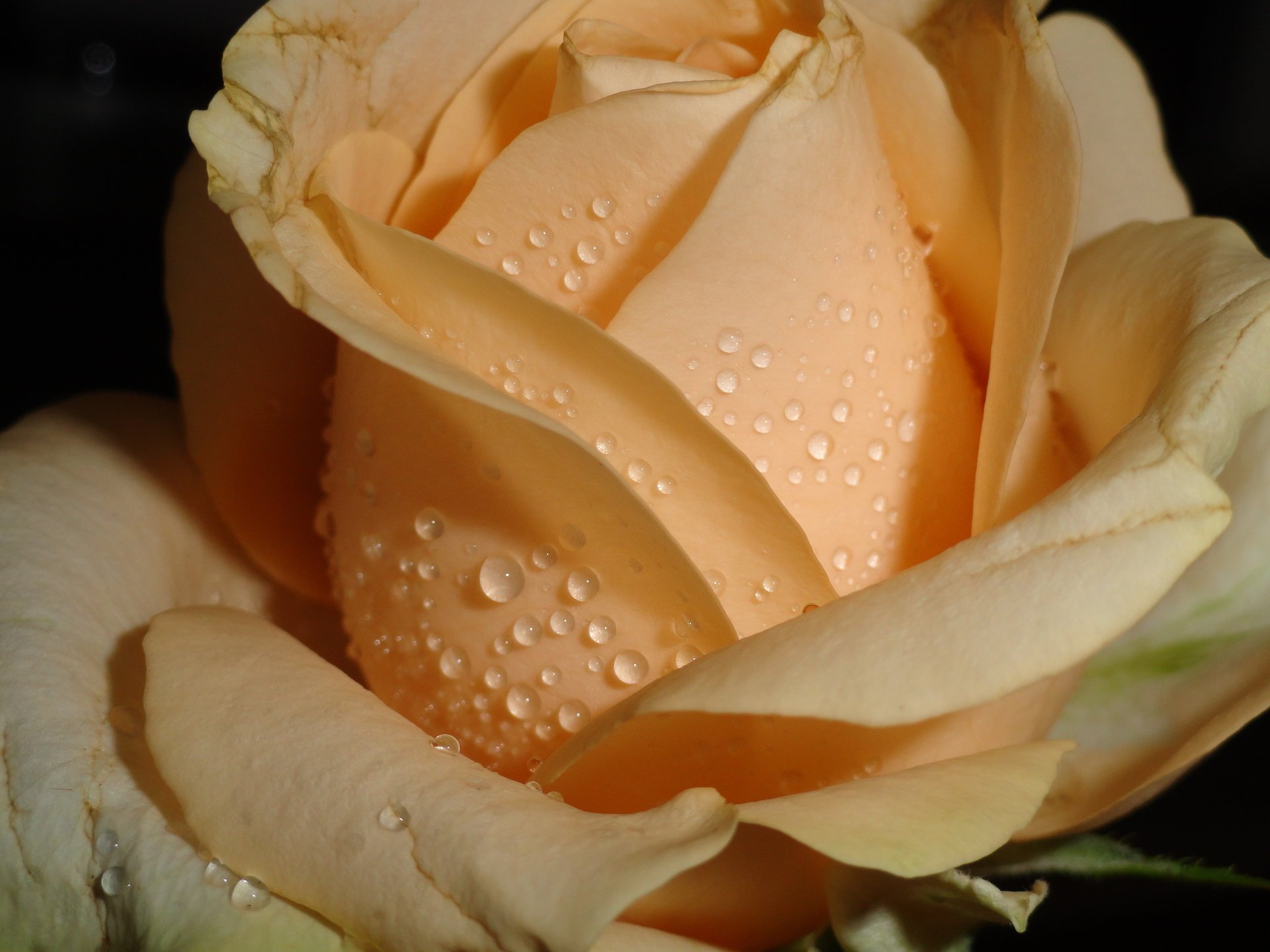 Image macro d'une rose de corail avec des gouttelettes de roséeImage macro d'une rose de corail avec des gouttelettes de rosée