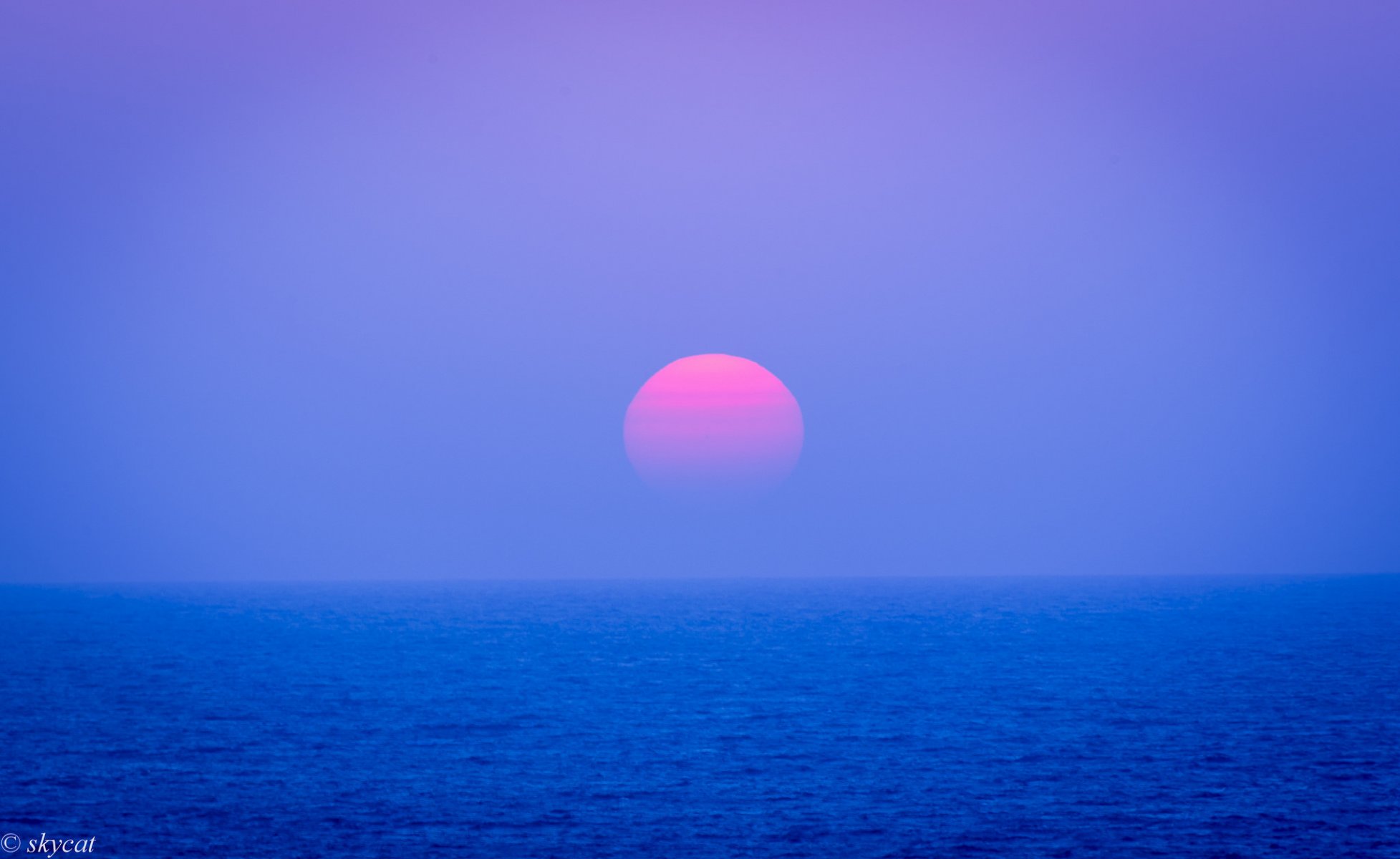 Océan au large des côtes du japon sur fond de ciel lilasOcéan au large des côtes du Japon sur fond de ciel lilas