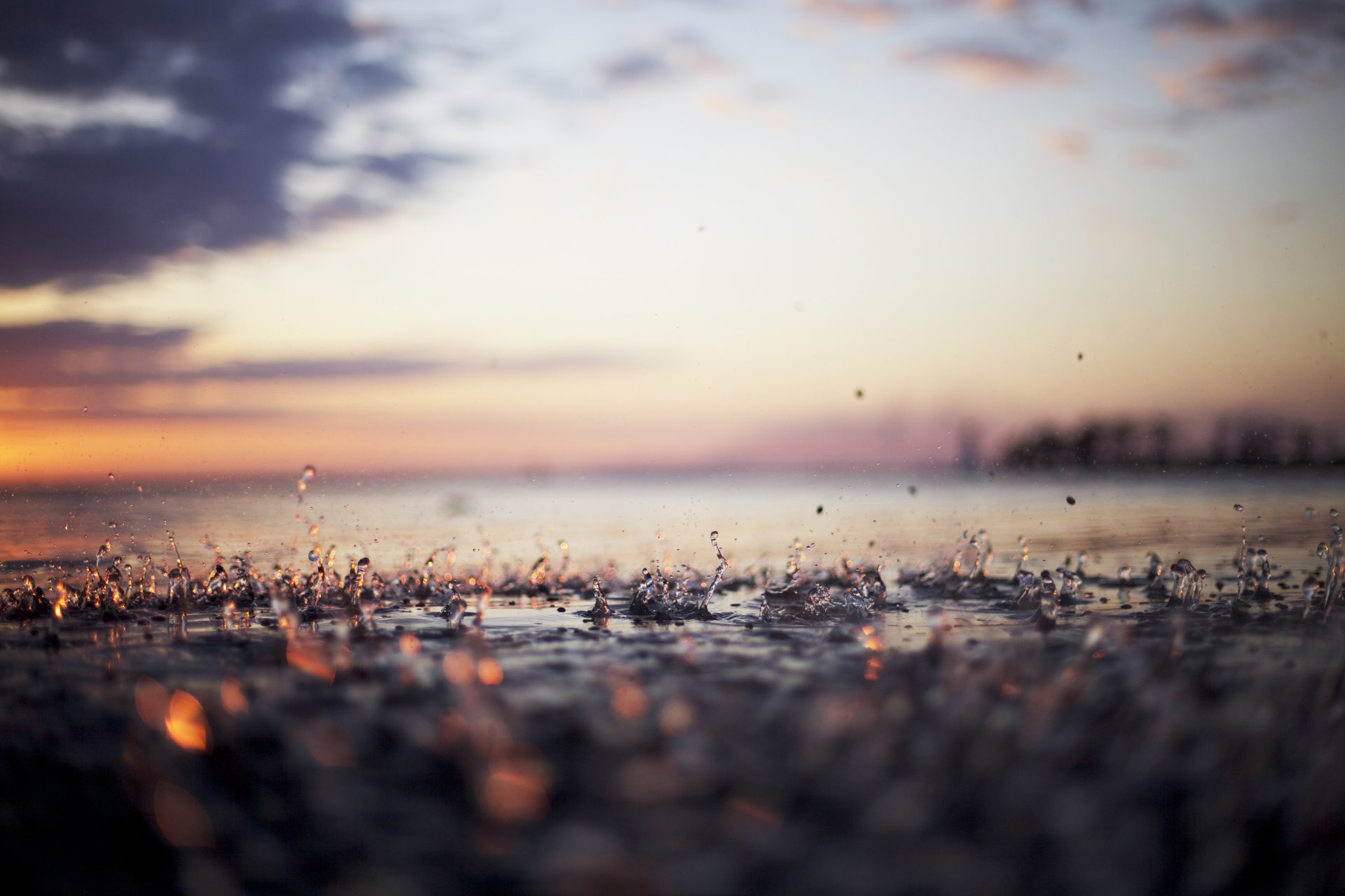 Éclaboussures de pluie sur fond de lumières de la villeÉclaboussures de pluie sur fond de lumières de la ville