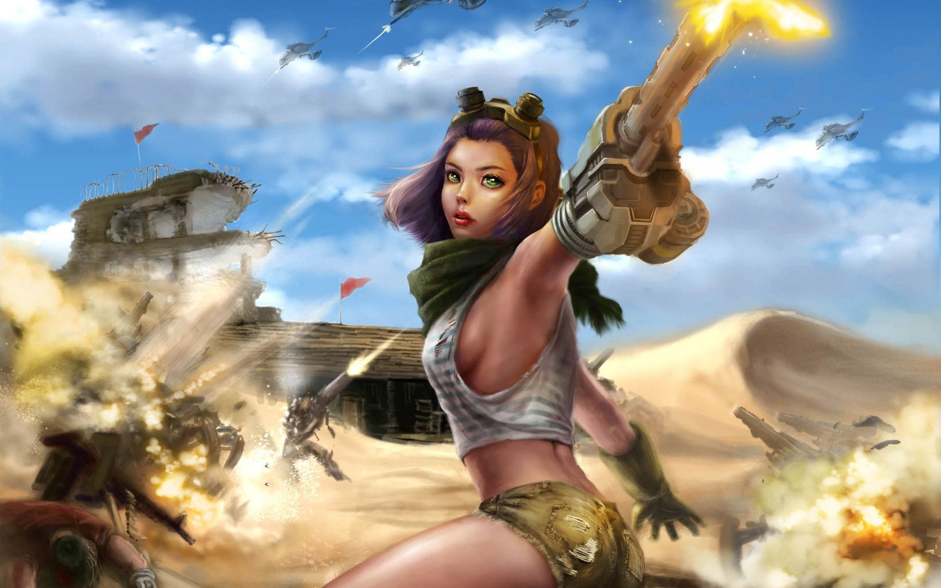 Art d'une jeune fille armée sur fond de fusilladesArt d'une jeune fille armée sur fond de fusillades