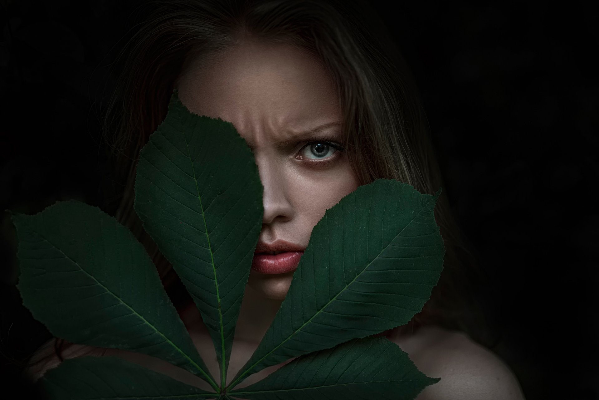 Portrait de malheureuses filles avec la feuille dePortrait de malheureuses filles avec la feuille de