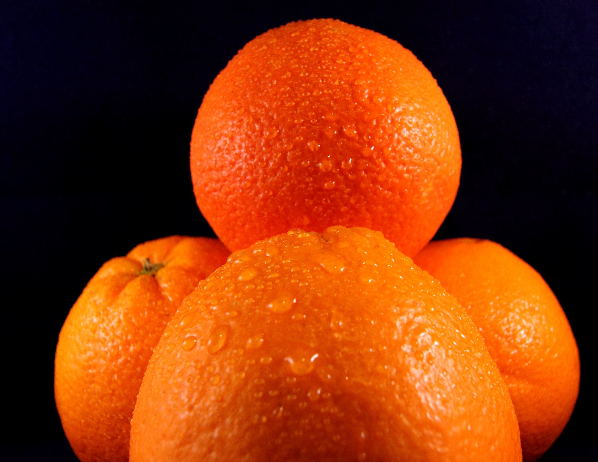 Gouttes d'eau sur les oranges sur fond noir