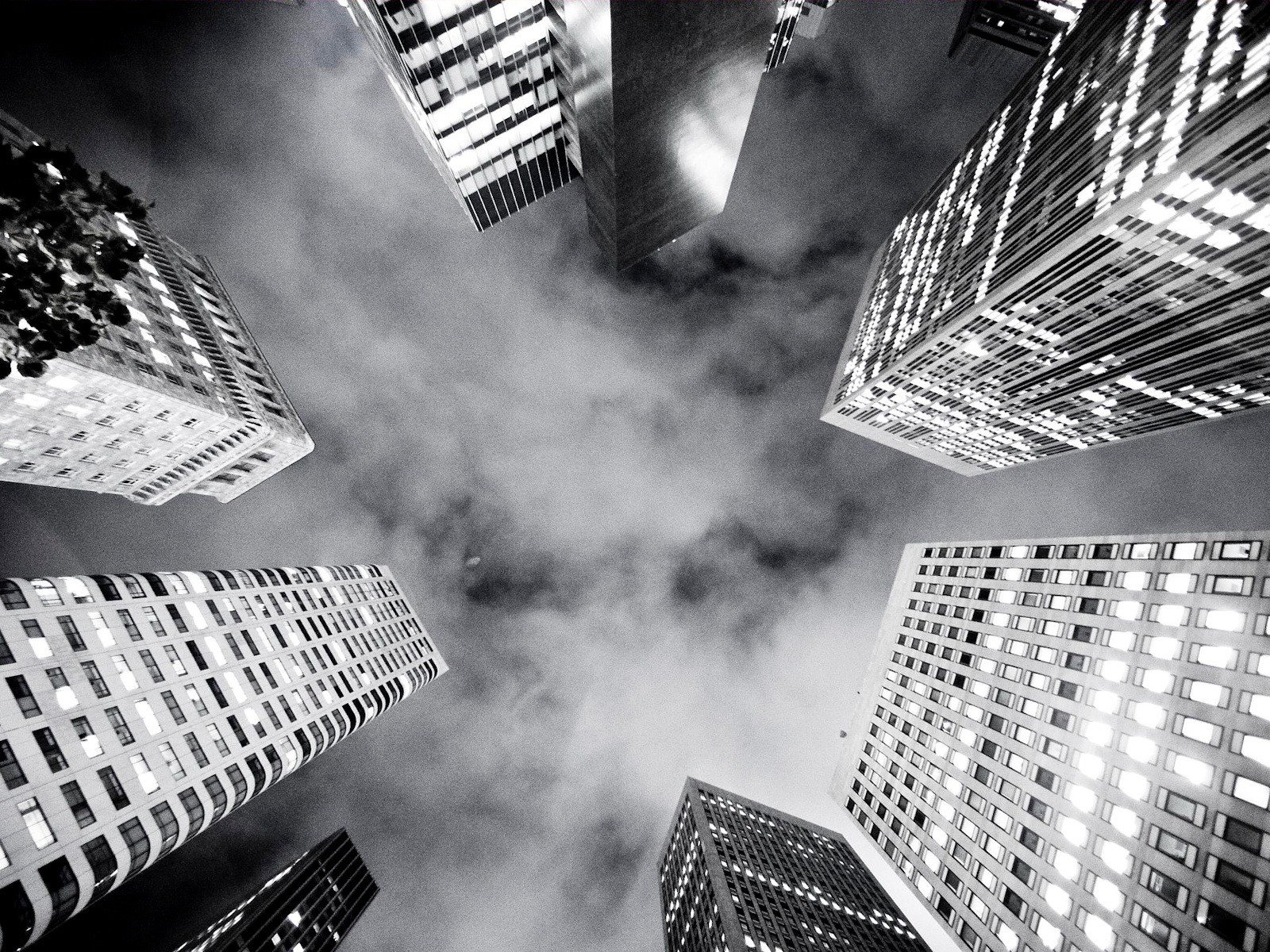 Gratte-ciel de new york à travers le verre de pluie humideGratte-ciel de New York à travers le verre de pluie humide