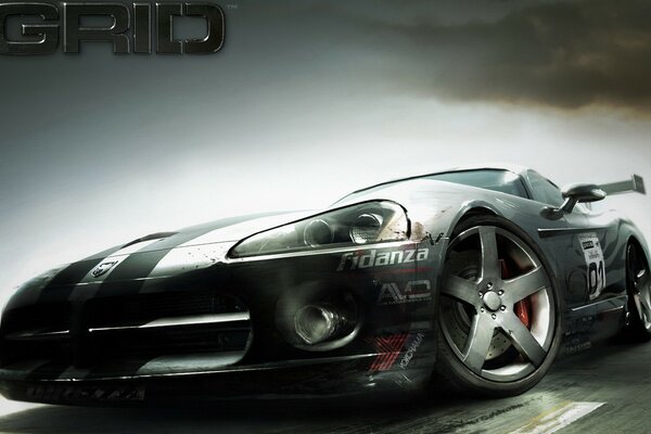 Les voitures de sport noires de codemasters se tiennent dans une rangéeLes voitures de sport noires de codemasters se tiennent dans une rangée