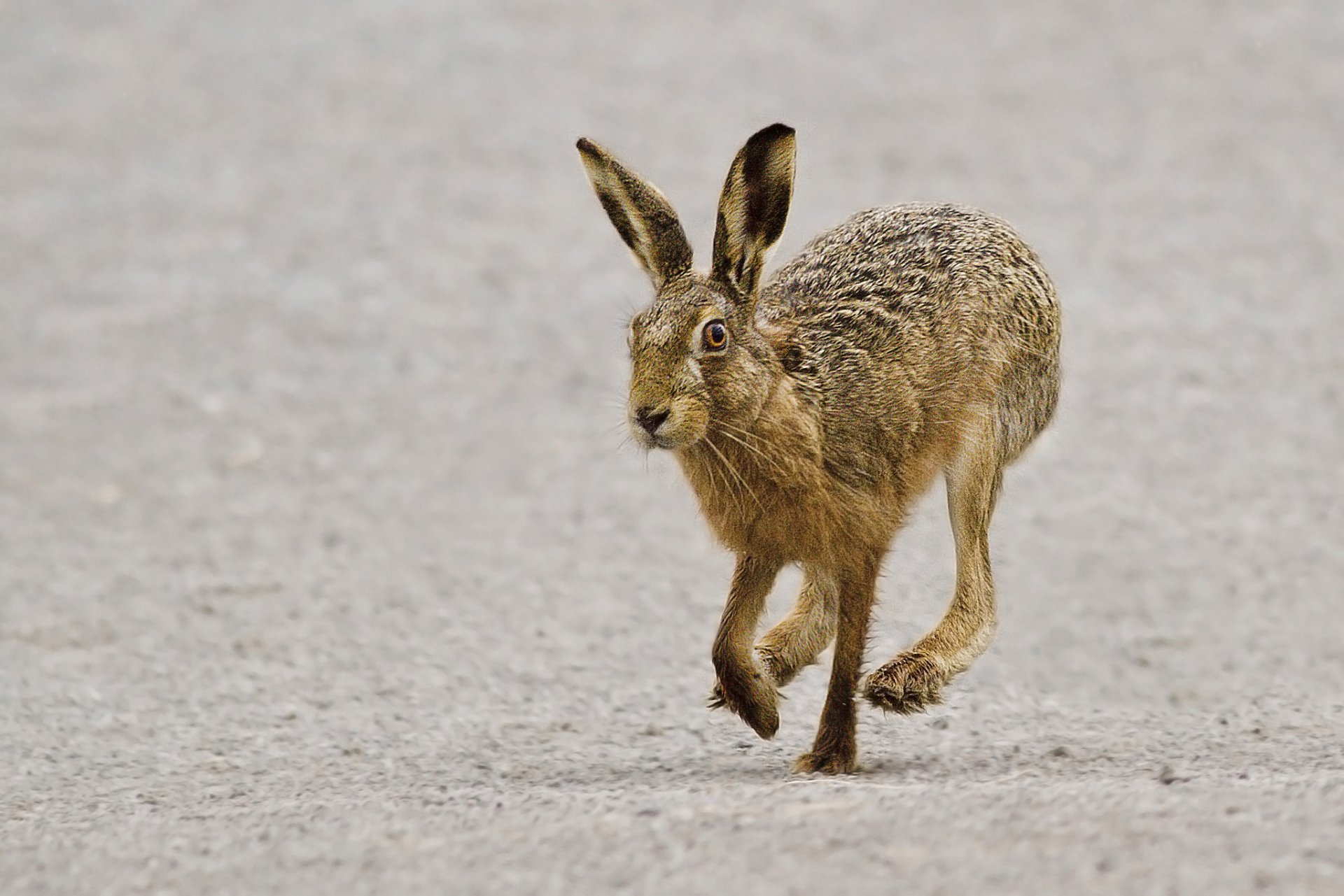 Le lièvre gris court une sorte de demi-arbre