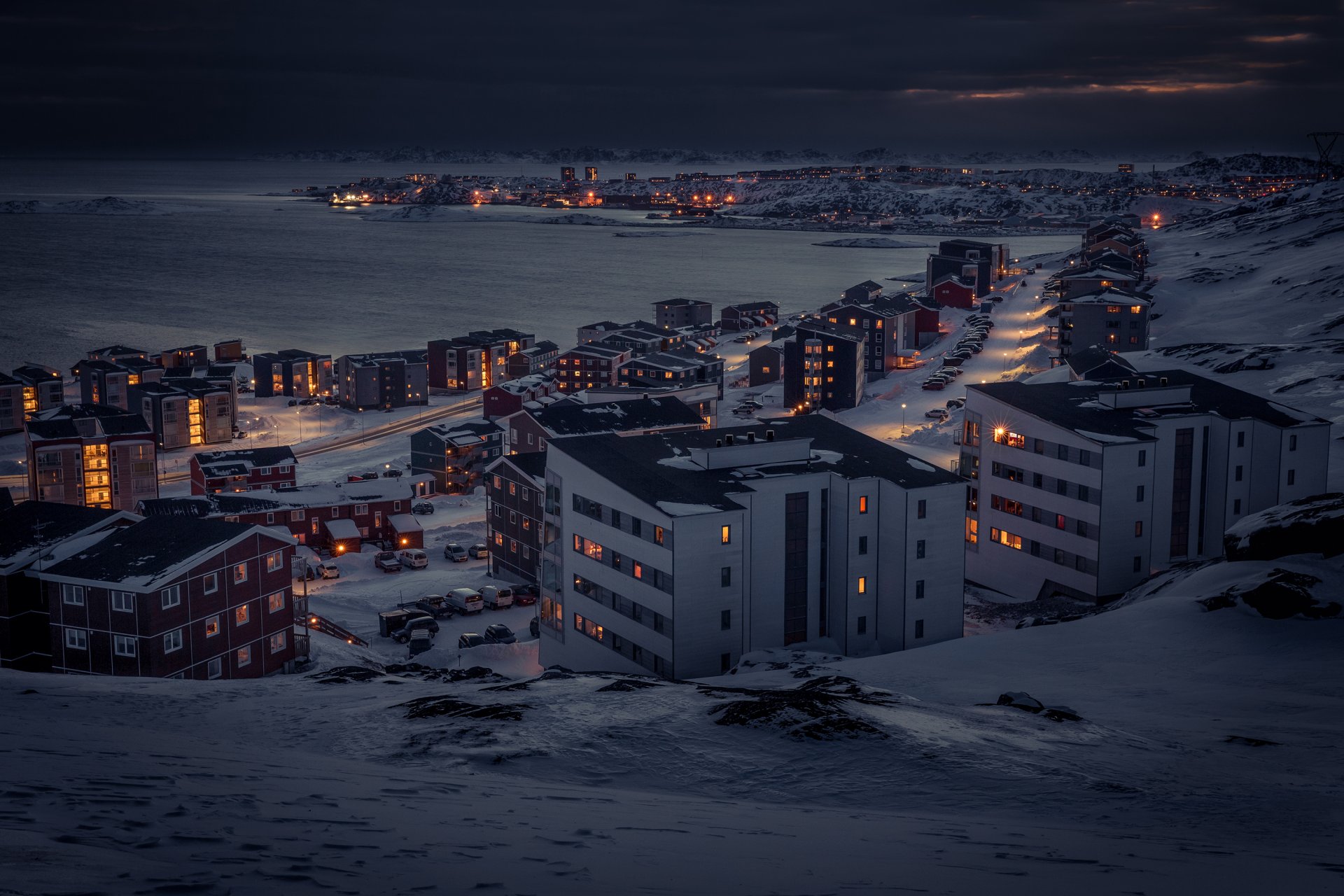 Montagnes enneigées de glace coucher de soleil nuages de plombMontagnes enneigées de glace coucher de soleil nuages de plomb