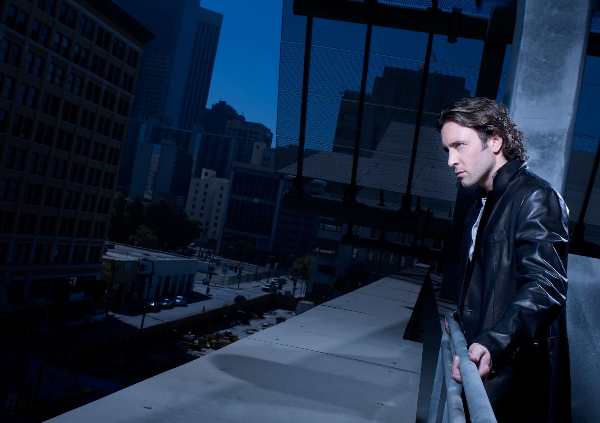 Guy Monte sur un cabriolet dans un paysage de montagne