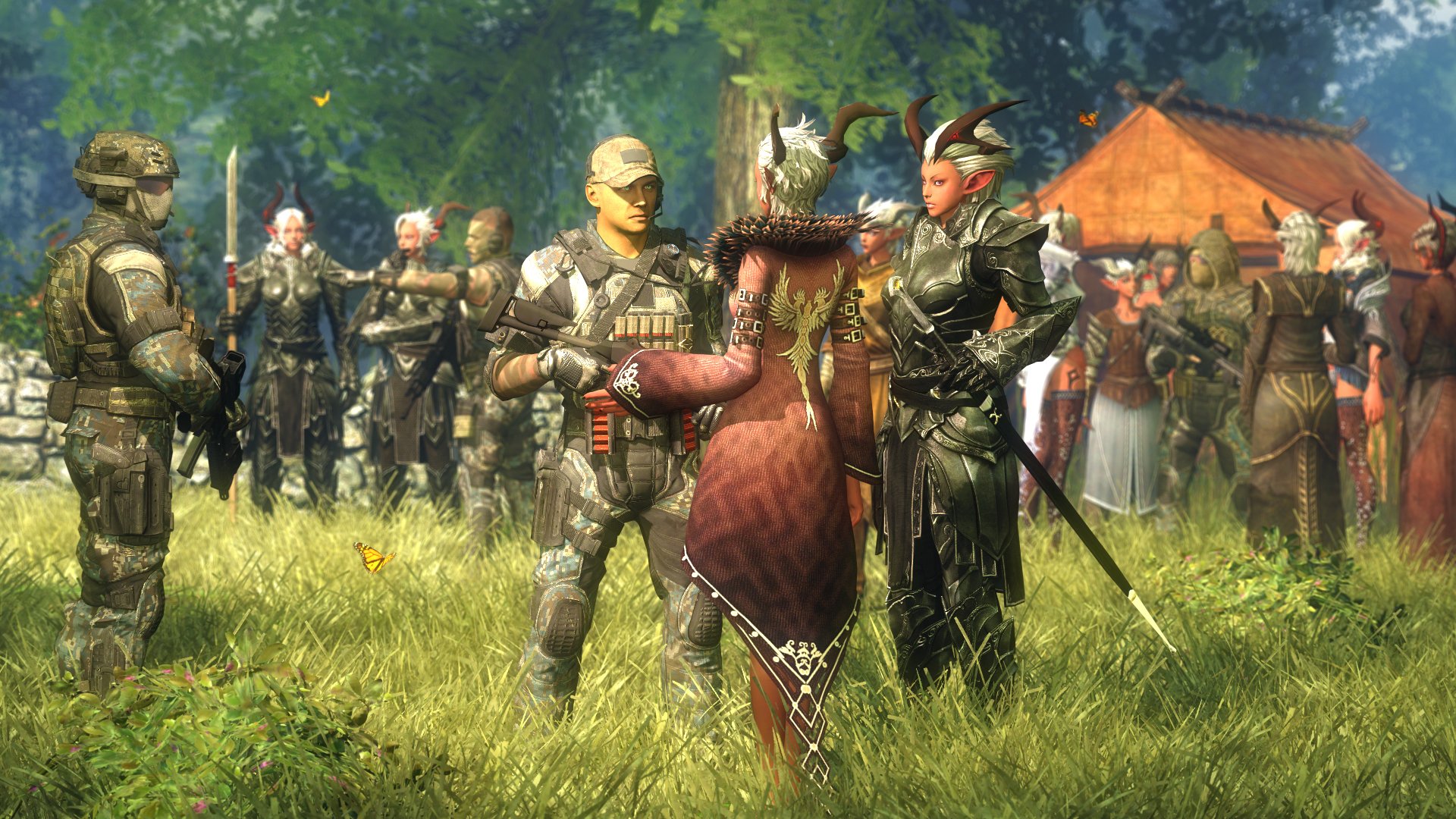 Elfe noir avec des nattes et des plumes près de l'arbreElfe noir avec des nattes et des plumes près de l'arbre